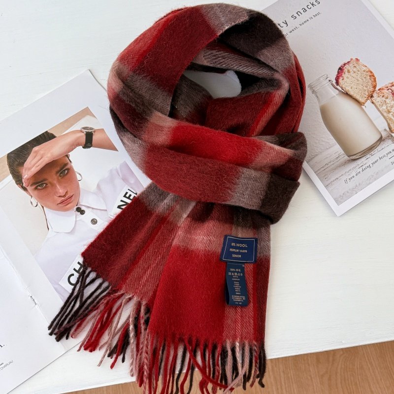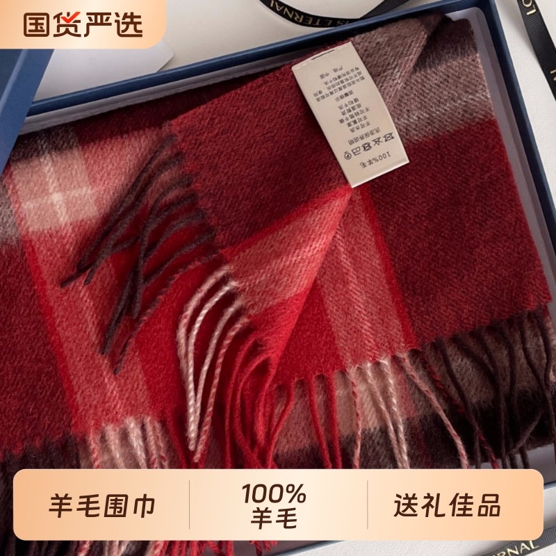 英伦格子纯羊毛圣诞节红色围巾女生秋冬季羊绒围脖送女友生日礼物