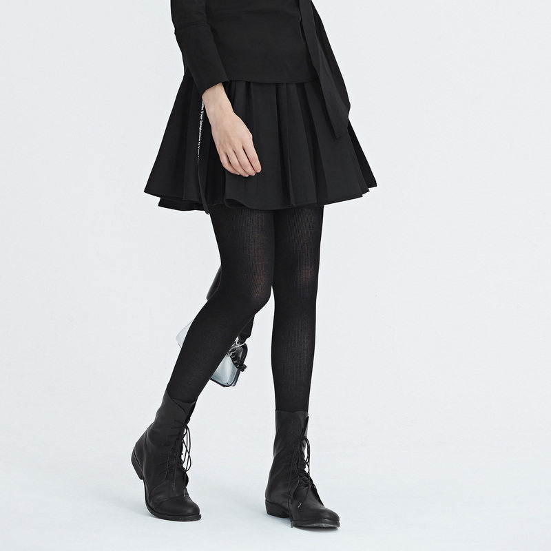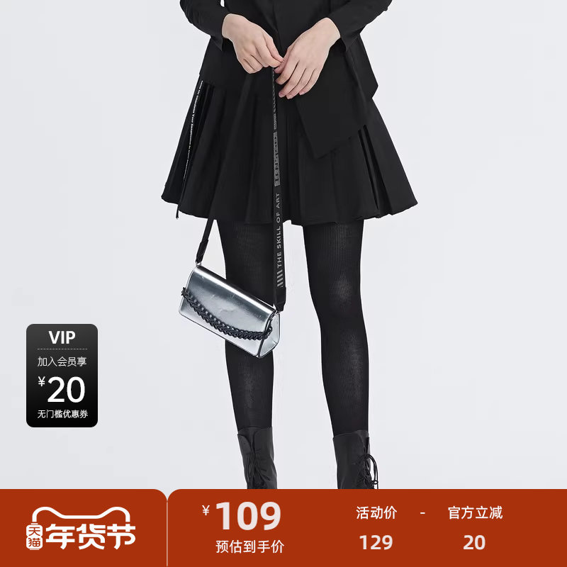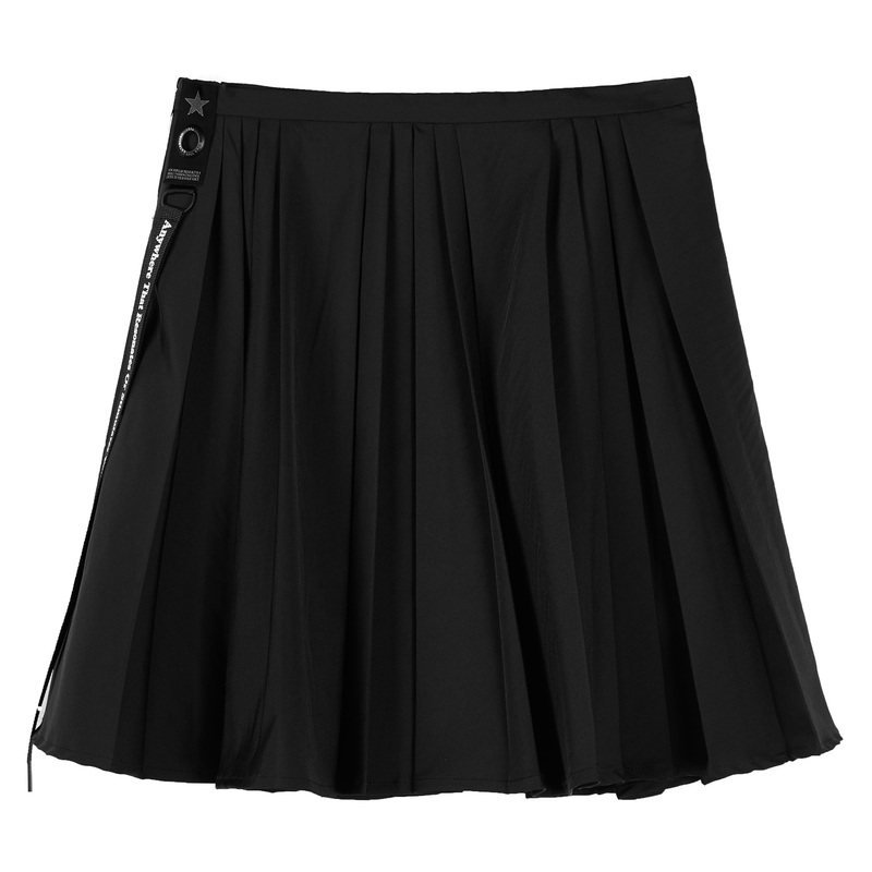 sdeer圣迪奥2020冬新撞色字母镂空织带黑色A字百褶裙S20461302