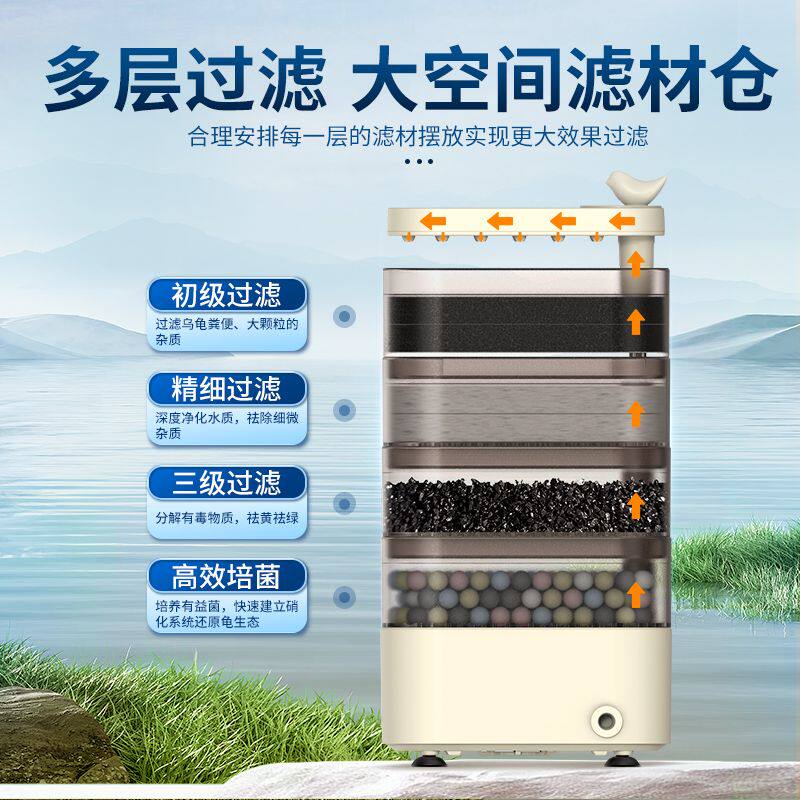 SQG龟缸过滤器低水位乌龟过滤器六角恐龙吸便超静音过滤盒滴流盒