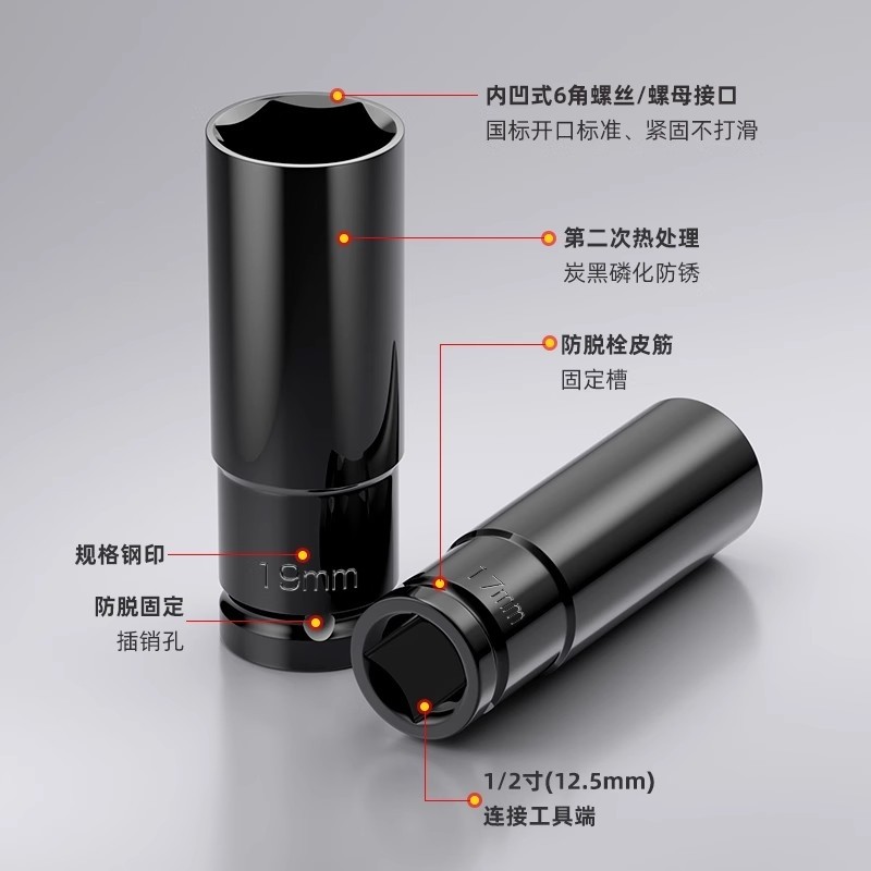 电动扳手套筒头全套内六角风炮手电钻加长工具套装8-34mm风批套筒