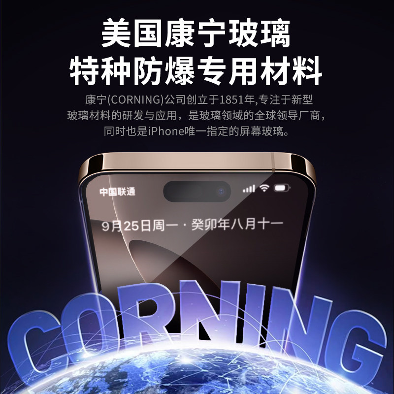 0度适用于苹果17钢化膜美国进口康宁膜大猩猩玻璃全系列iphone16promax手机贴膜16e/15/14防蓝光护眼膜全覆盖