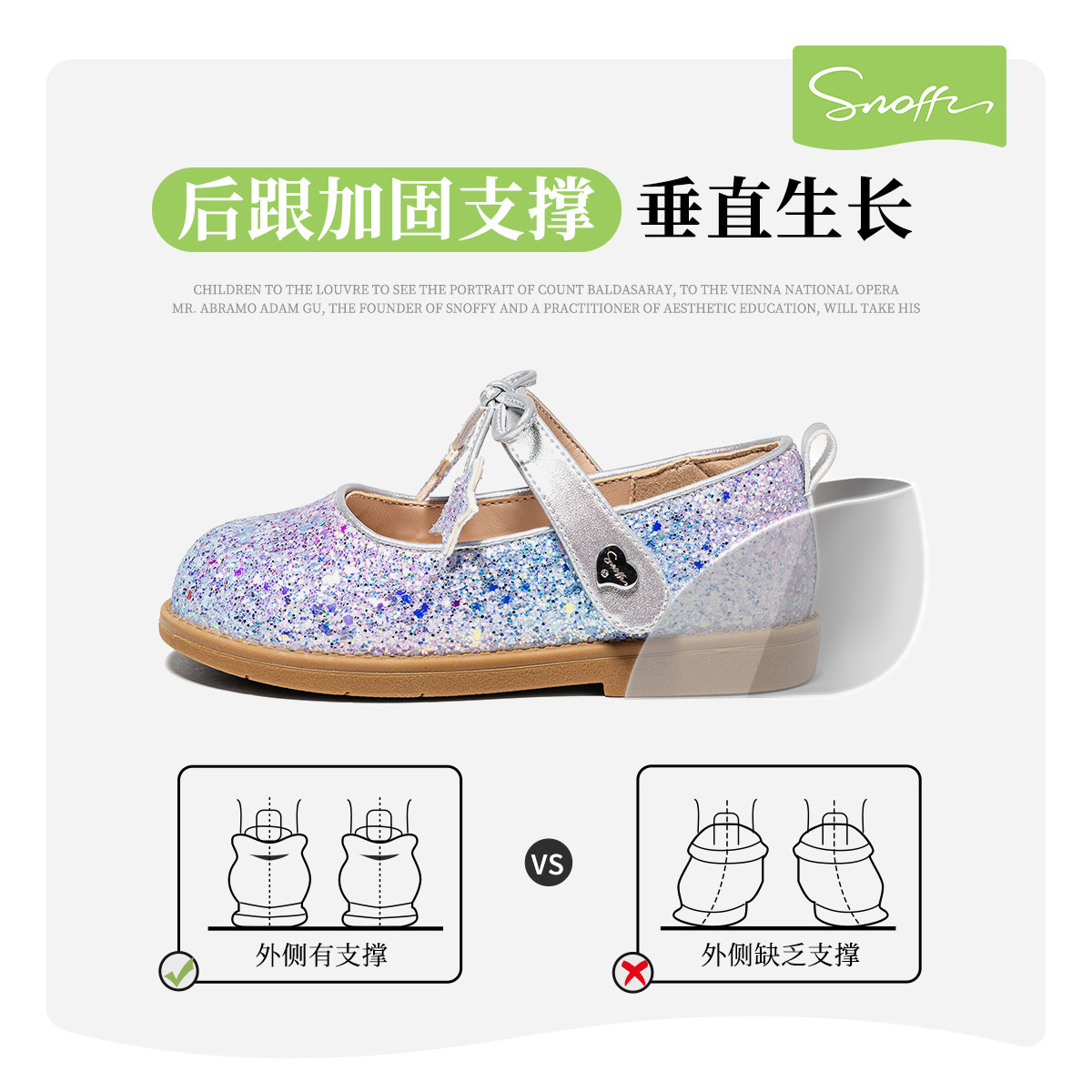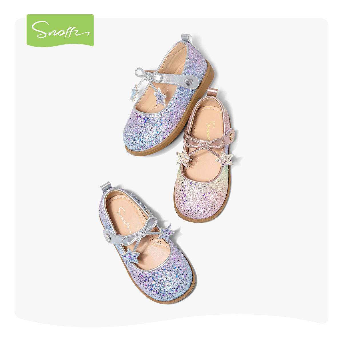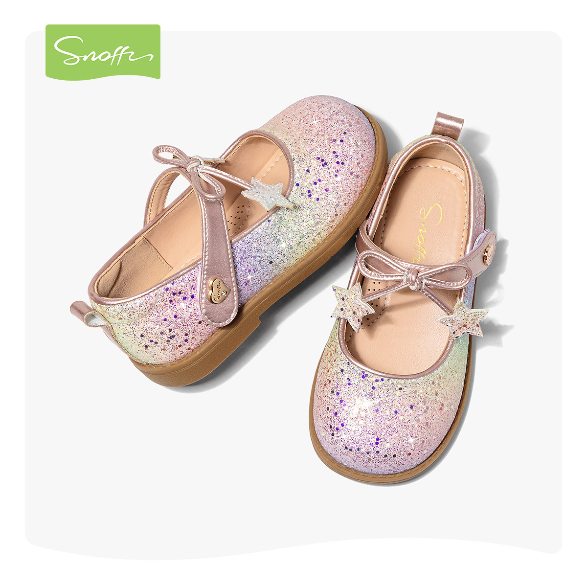 斯纳菲女童渐变水晶鞋2026年春季新款儿童小女孩软底防滑宝宝皮鞋