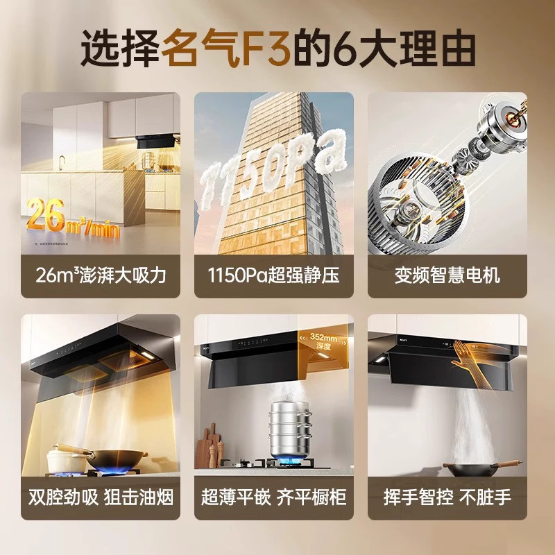 老板出品名气F3+6107B顶侧双吸油烟机家用厨房大吸力抽油烟机套装