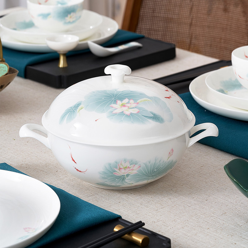 华光国瓷 骨瓷餐具单品 健康釉中彩家用中式 抗菌碗盘碟 春江水暖