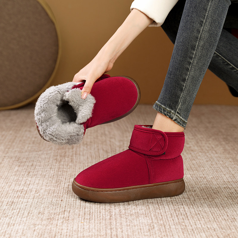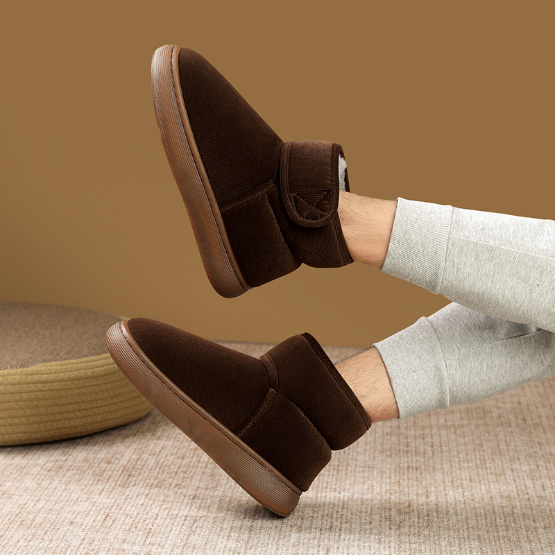 冬季保暖棉拖鞋女中老年防滑加绒加厚居家厚底外穿棉鞋男高帮包跟