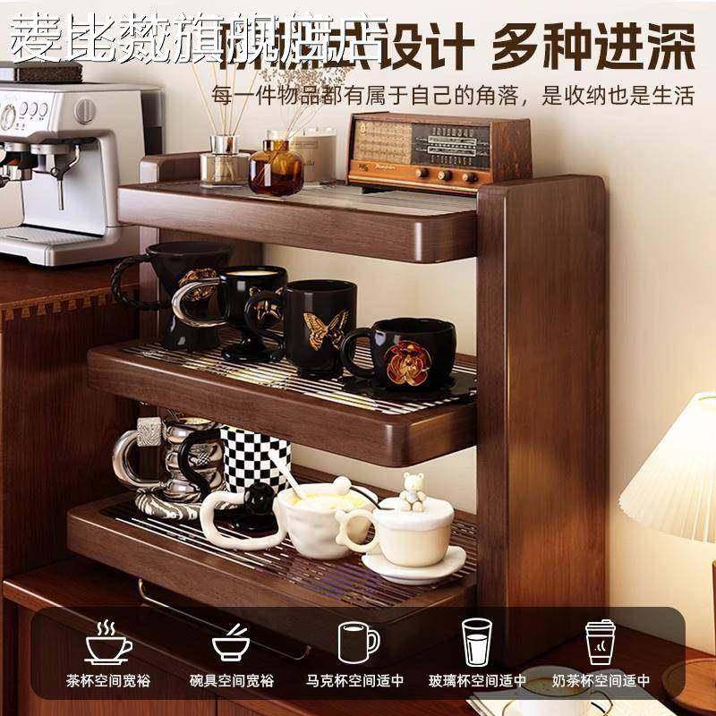 麦比梵实木杯架高级感轻奢多层置物架咖啡角布置水杯架咖啡杯收纳层架床笠拉车