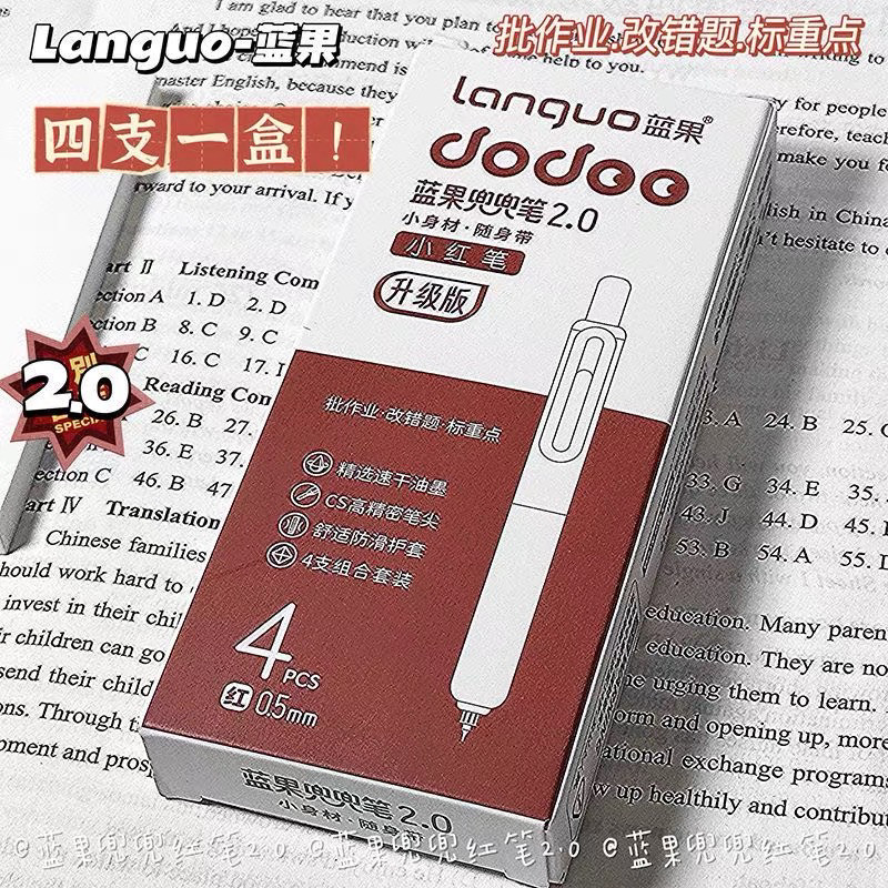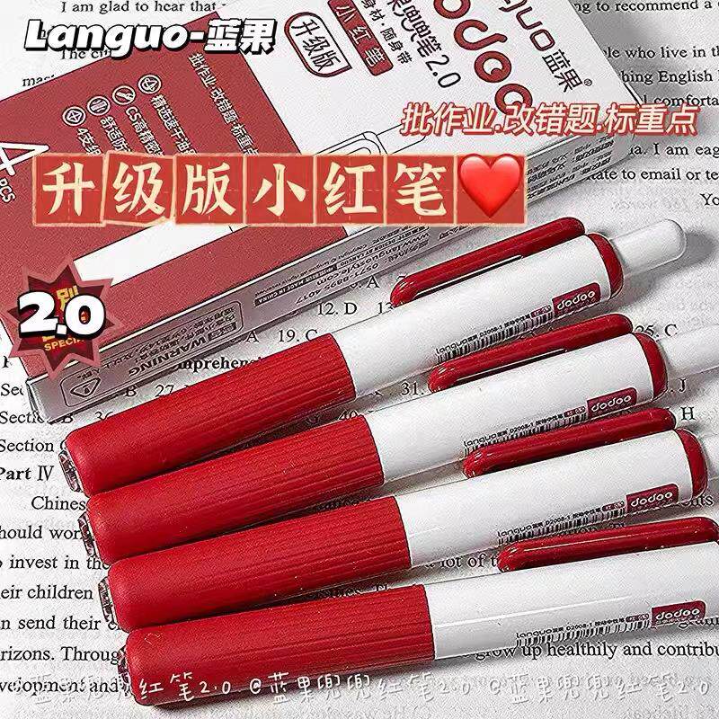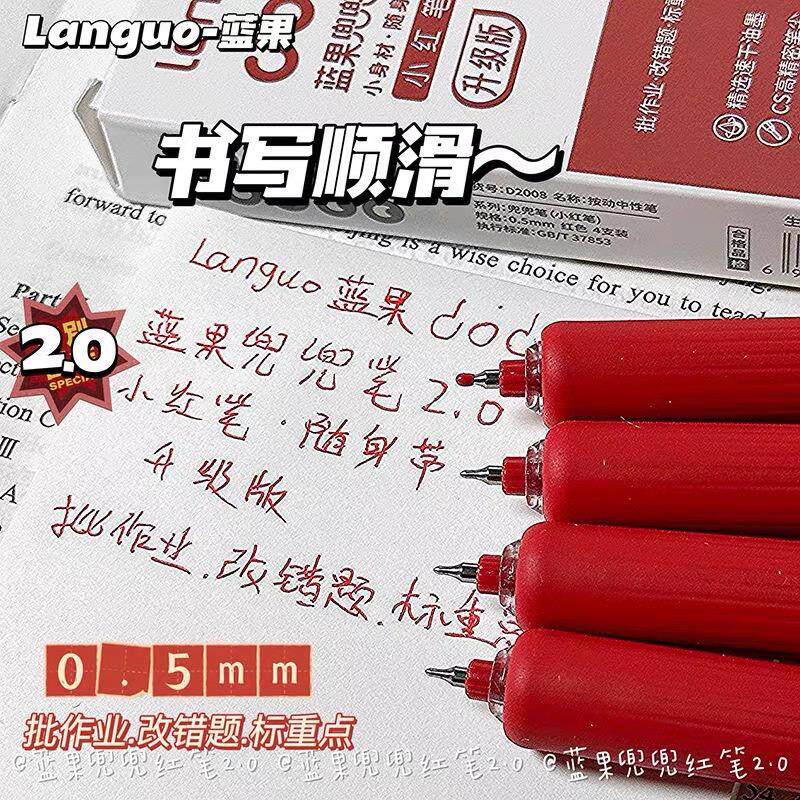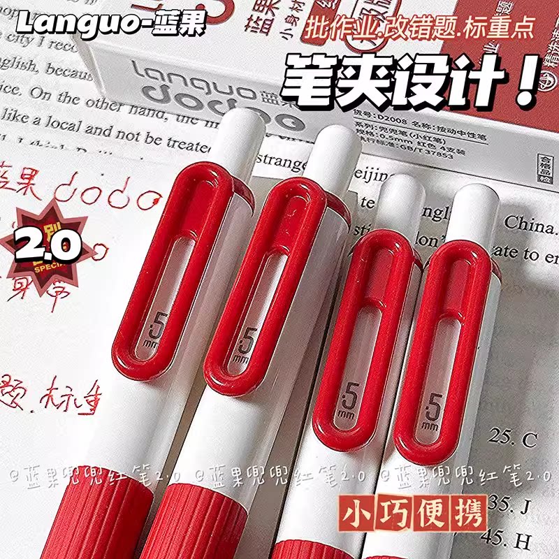 蓝果兜兜按动红笔ins高颜值口袋速干0.5批改中性笔学生红色标记笔