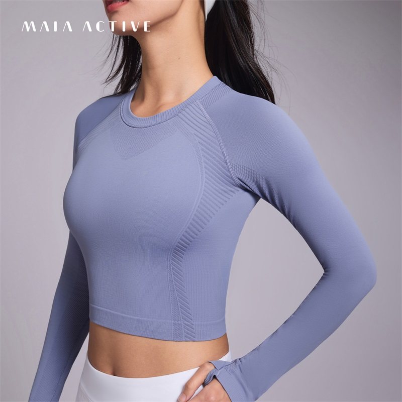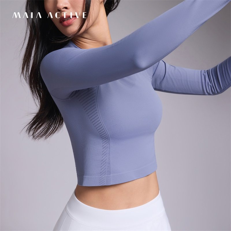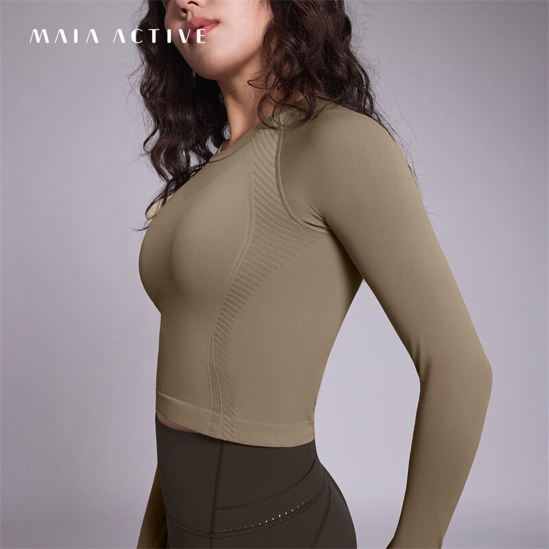 3D一体织长袖TEE跑步修身带胸垫瑜伽衫运动上衣MAIAACTIVE 53TL71