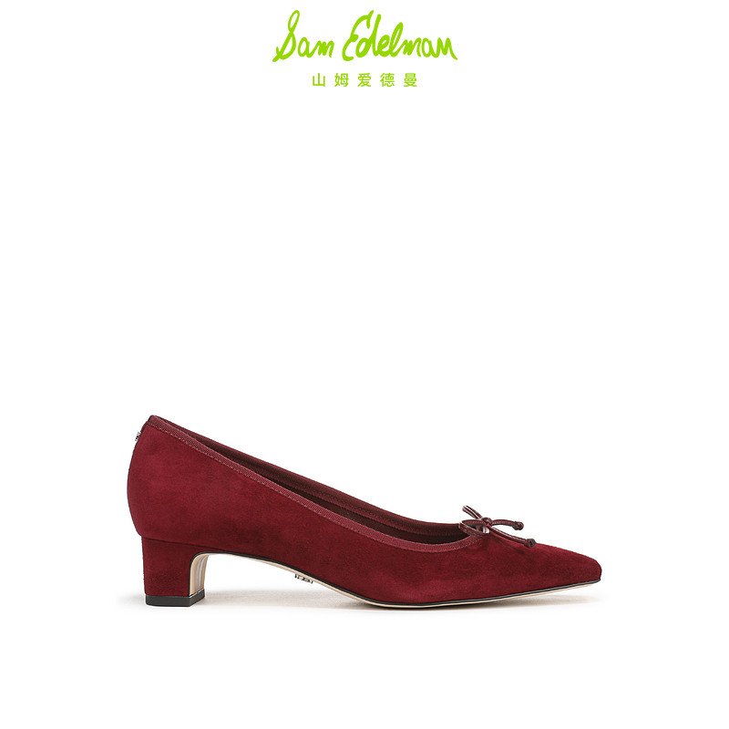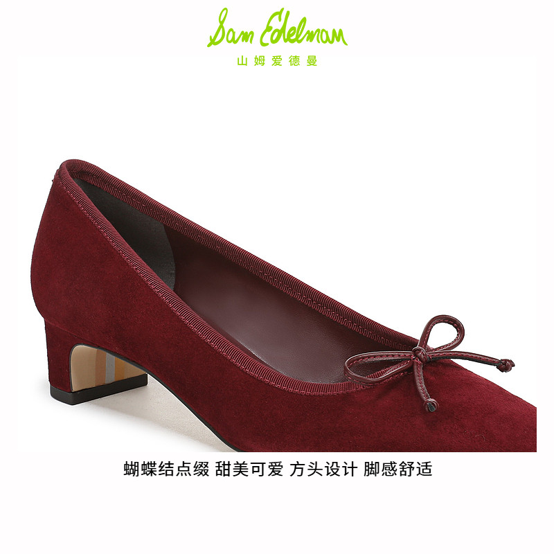 SAM EDELMAN山姆爱德曼春通勤宴会丝绒红色复古粗高跟皮鞋女RINDA