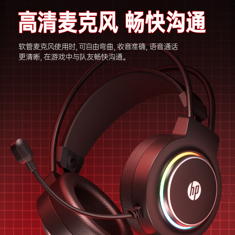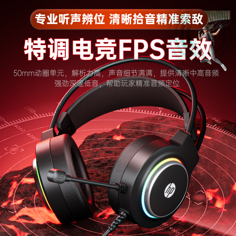 惠普H300游戏耳机带麦有线低延迟头戴式电脑竞技专用三角洲笔记本