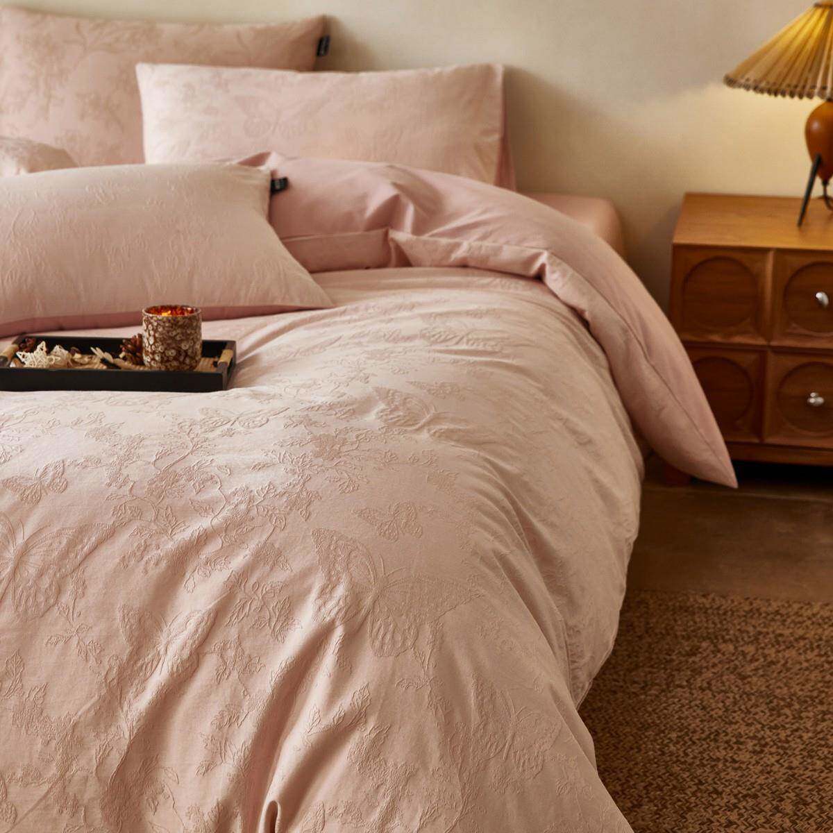 水洗提花全棉磨毛四件套舒适秋冬季保暖加厚纯棉蝴蝶被套床单床笠