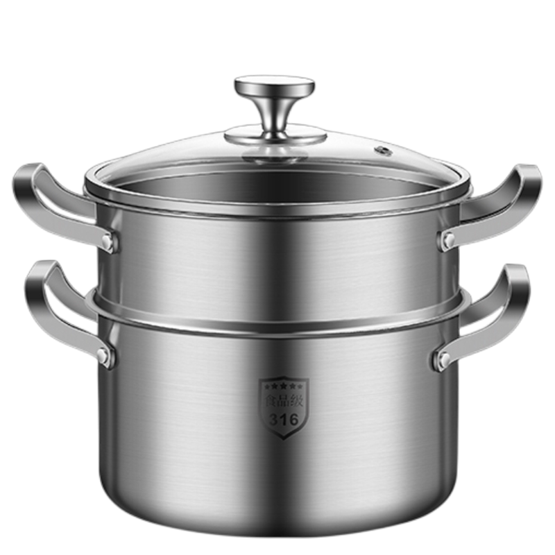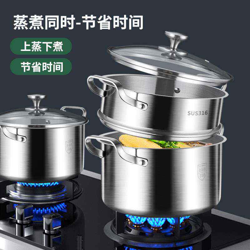 苏泊尔蒸锅家用 德国316不锈钢汤锅一体加厚小锅双层蒸屉双耳带蒸