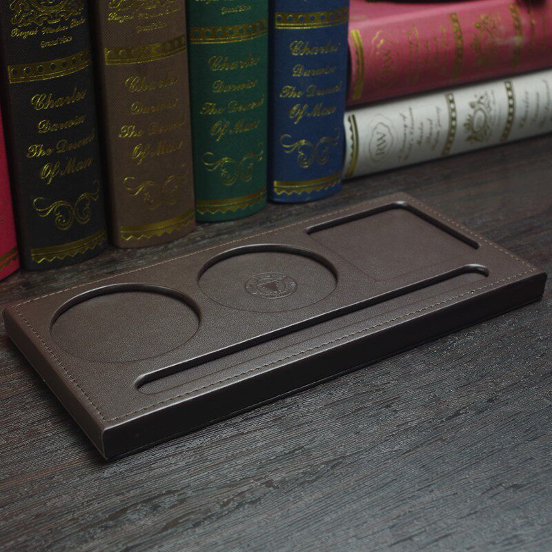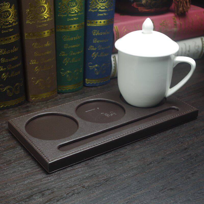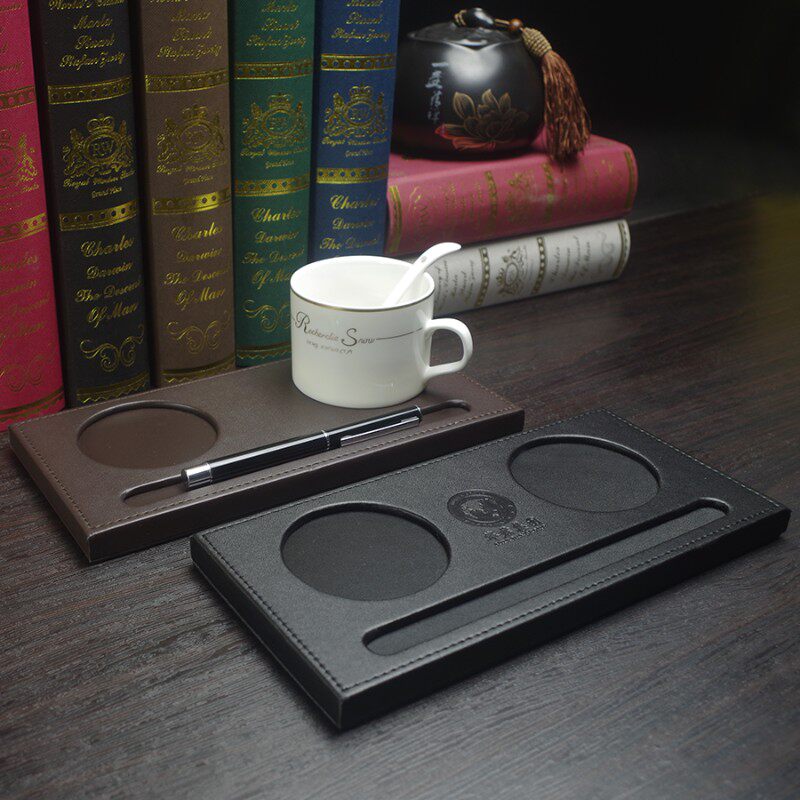 创意皮质三孔杯托带笔槽会议室水杯垫酒店茶杯托LOGO定制会议杯垫