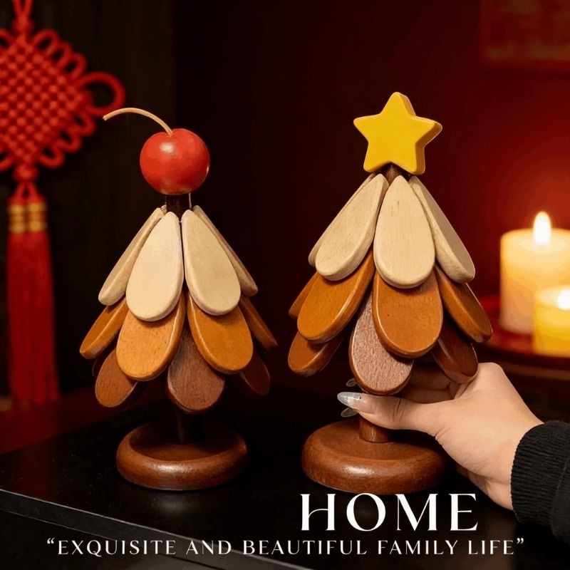 圣诞树隔热垫创意餐垫桌杯垫实木防烫耐高温锅垫餐边柜摆件装饰品