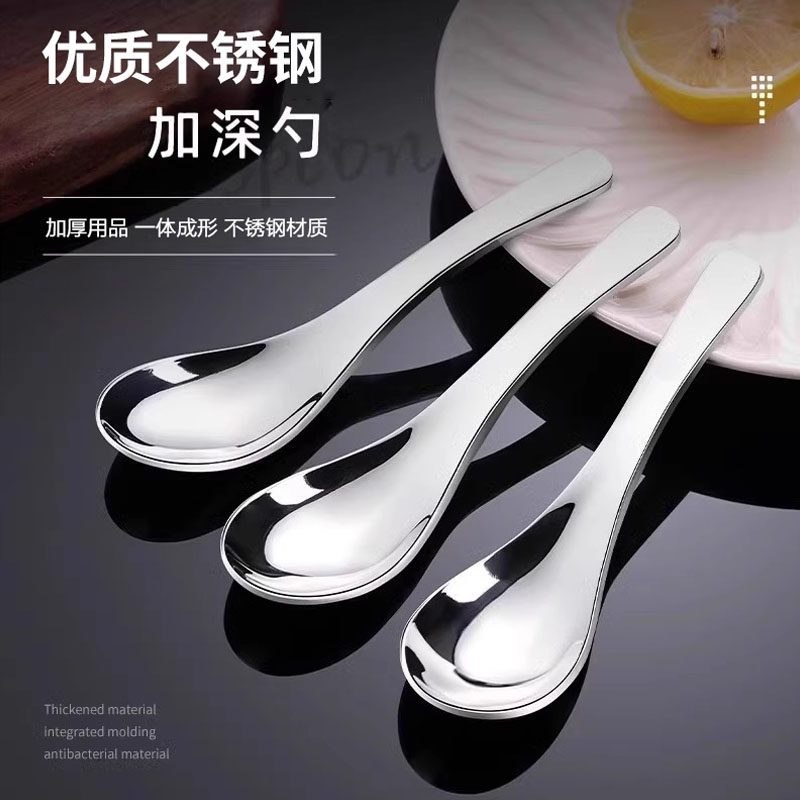 加厚不锈钢食品级汤匙家用儿童成人加深吃饭喝汤大勺子调羹餐饮