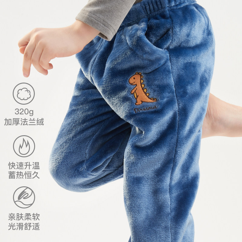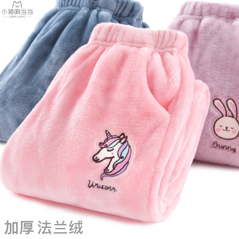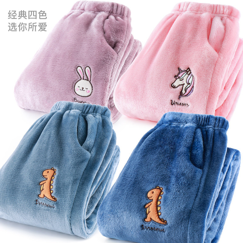 儿童睡裤珊瑚绒女童裤子秋冬男童法兰绒加绒加厚家居裤大童暖暖裤