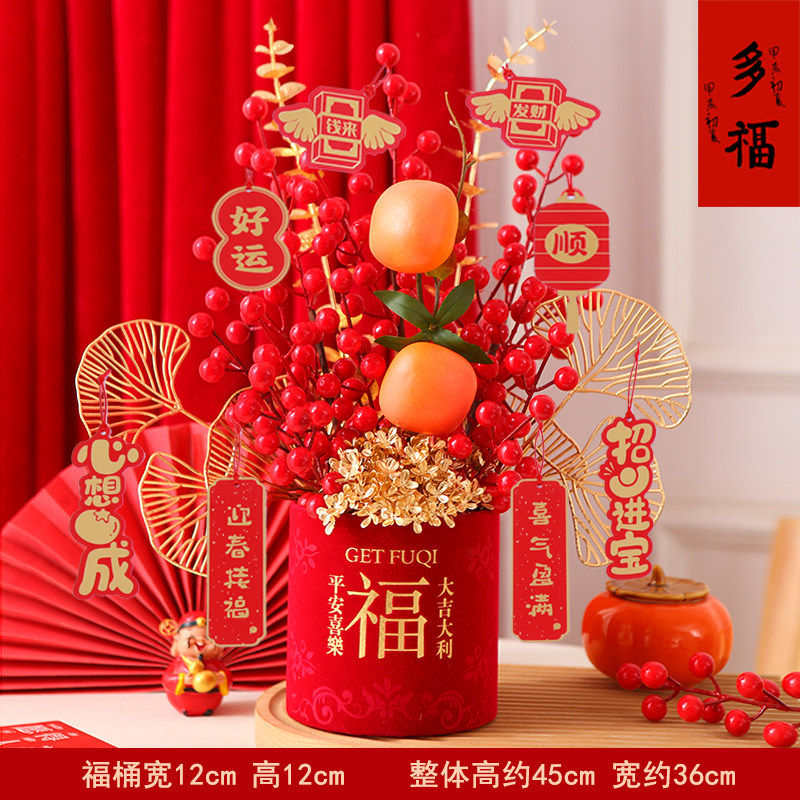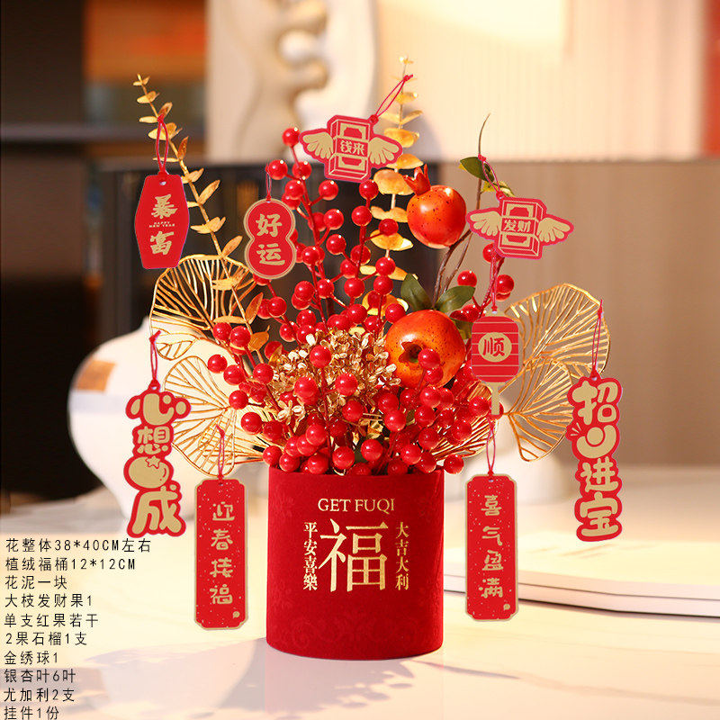 春节装饰摆件发财果红果一整套仿真花艺年宵过年福通插花新年礼物