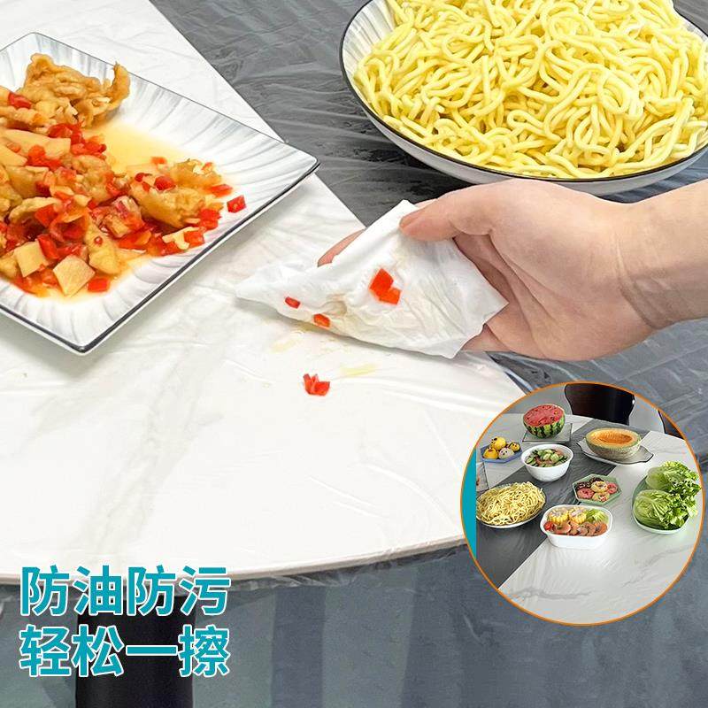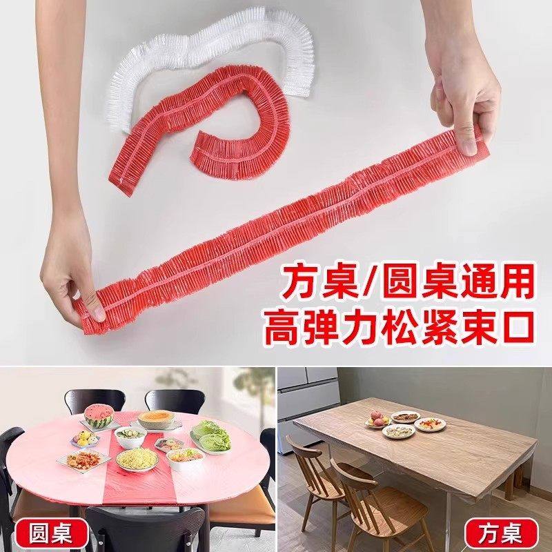 松紧束口桌布一次性桌布加厚免洗透明红色餐馆饭店酒席婚庆桌套