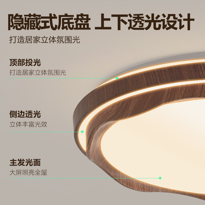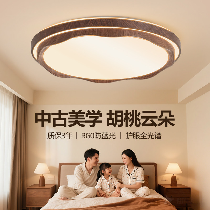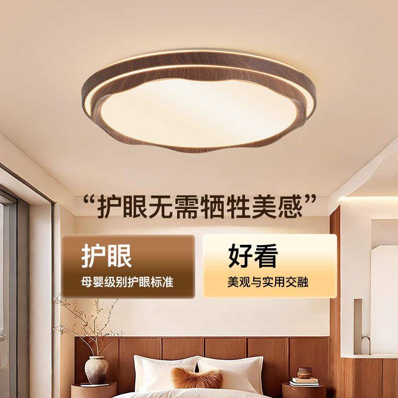 雷士照明中古风吸顶灯超薄超亮胡桃木纹客厅卧室灯全光谱全屋灯具