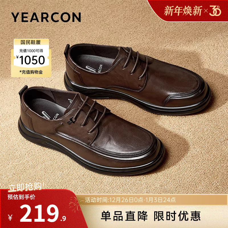意尔康男鞋春秋季真皮年轻人商务休闲皮鞋男士英伦风软底男式通勤