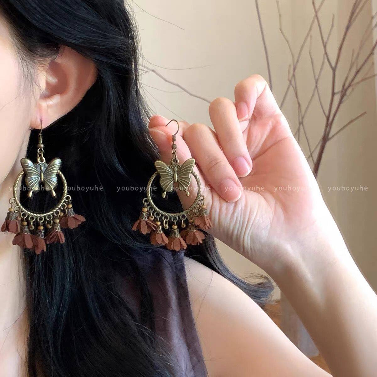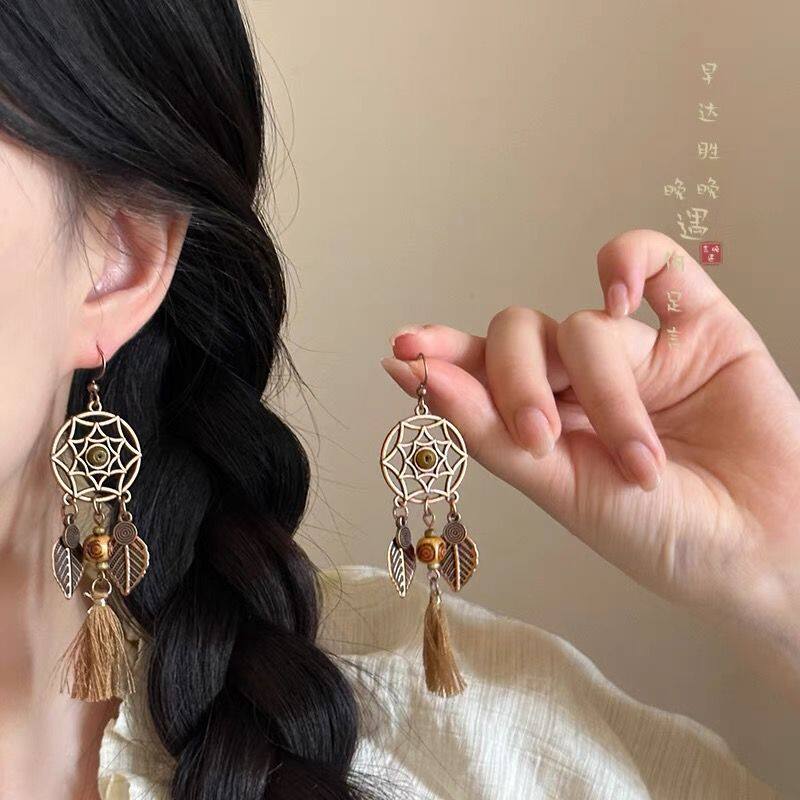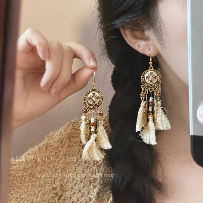 波西米亚长款流苏耳环女高级感度假风个性夸张耳坠复古民族风耳饰