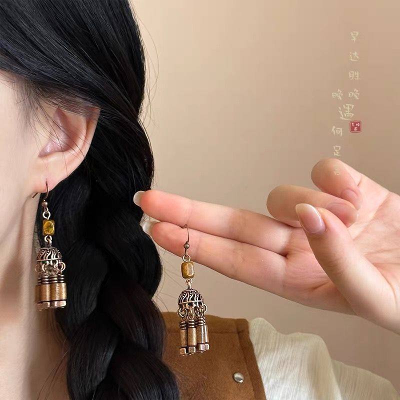 复古新中式国风墨竹扇形流苏耳环气质耳坠新款高级感个性气质耳饰