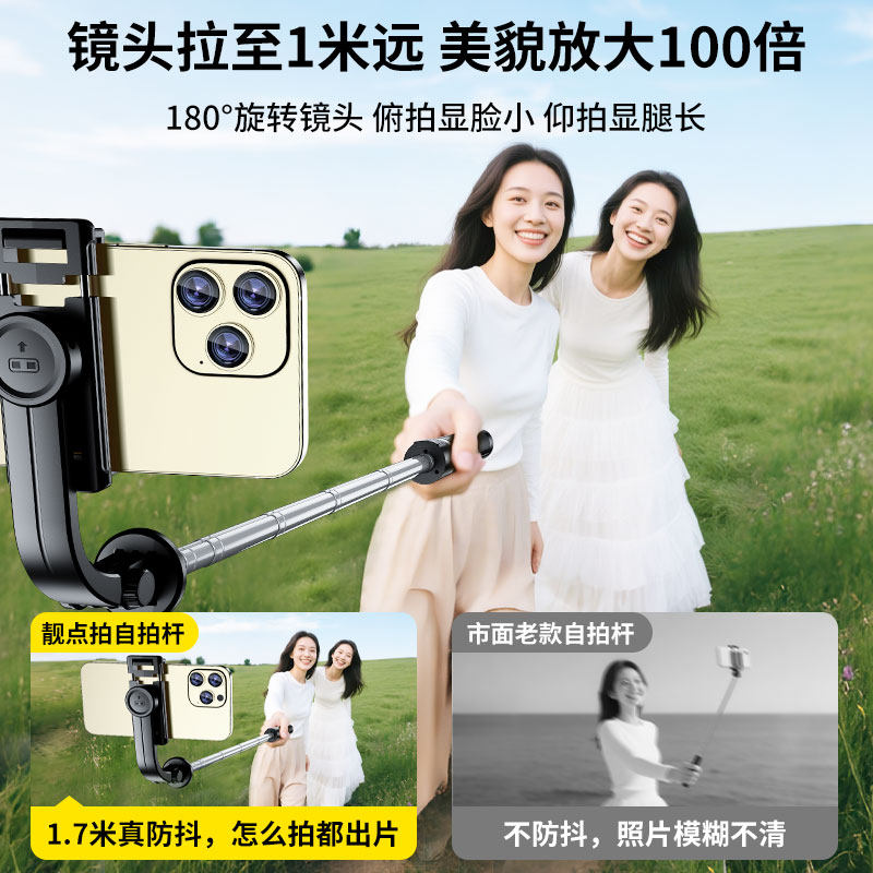 靓点拍2026新款自拍杆三脚架落地通用手机自拍拍照神器360度旋转旅游便携蓝牙遥控手持直播支架拍摄防抖稳定