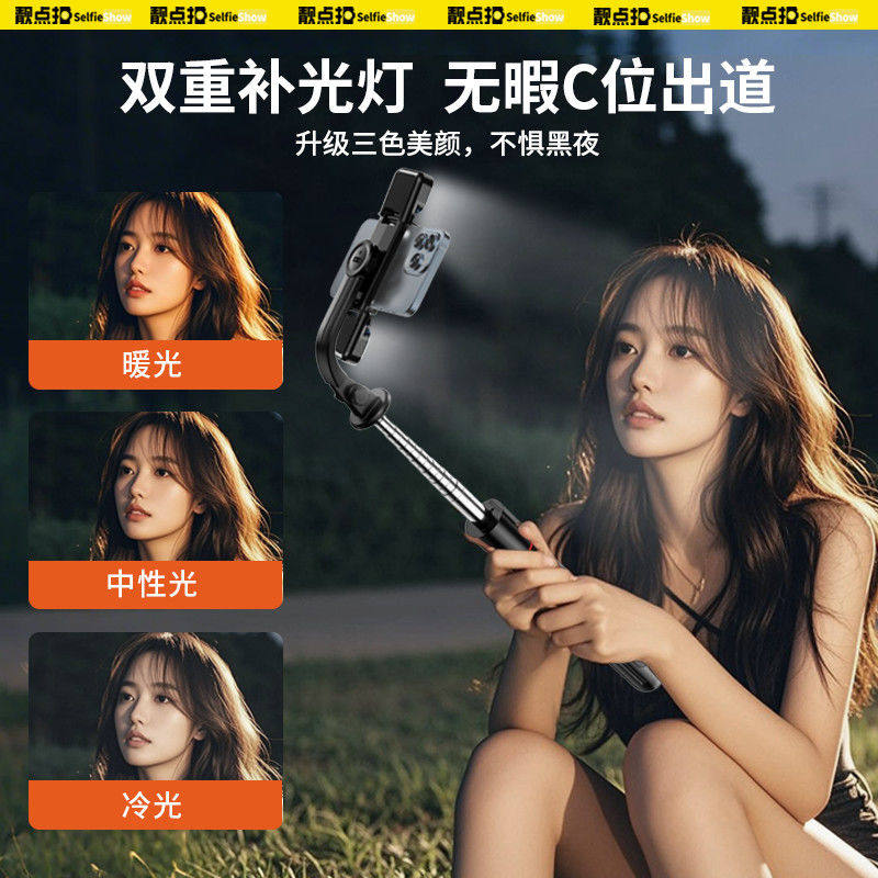叠品A21P2025新款金属多功能补光自拍杆三脚架遥控拍照神器手机直播支架360°旋转拍照抖音蓝牙便携式防抖