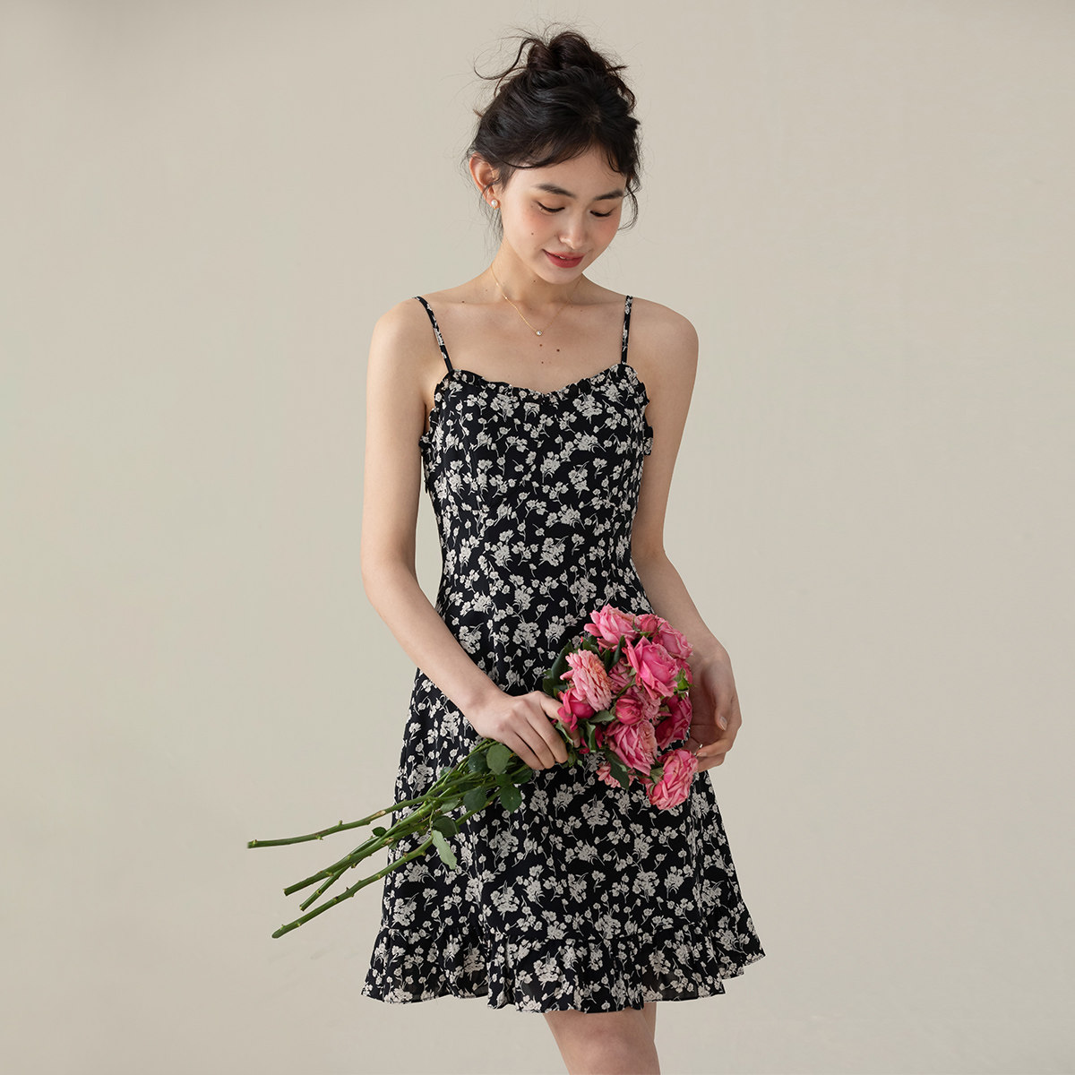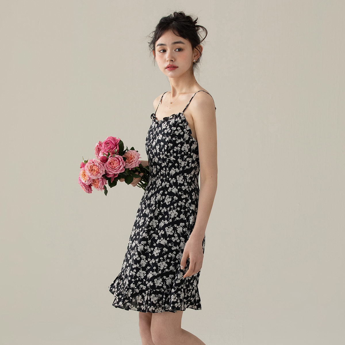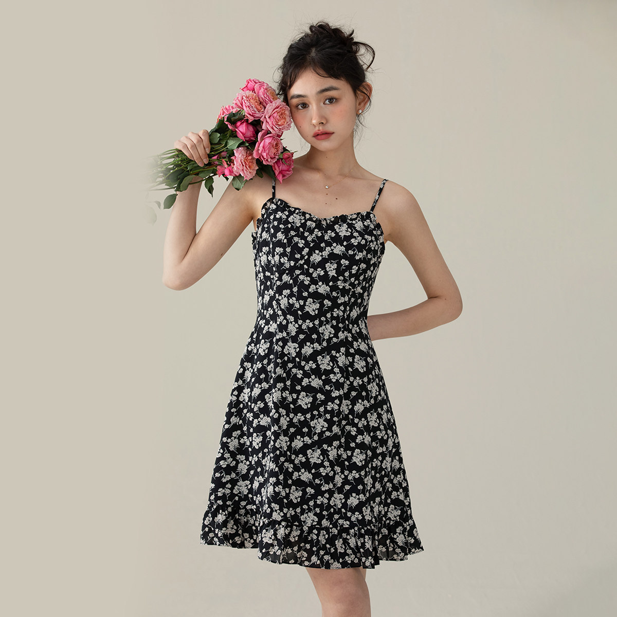 one morea字碎花连衣裙女高级感吊带茶歇裙度假裙子