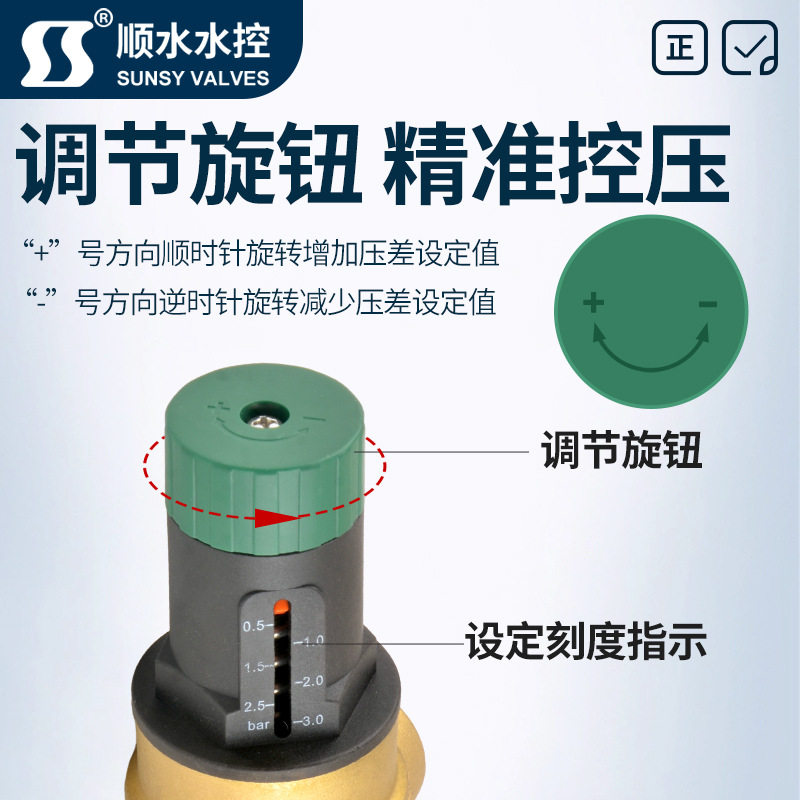 空调内丝冷暖两联供压差旁通阀全铜地暖可视调节刻度压差旁通阀