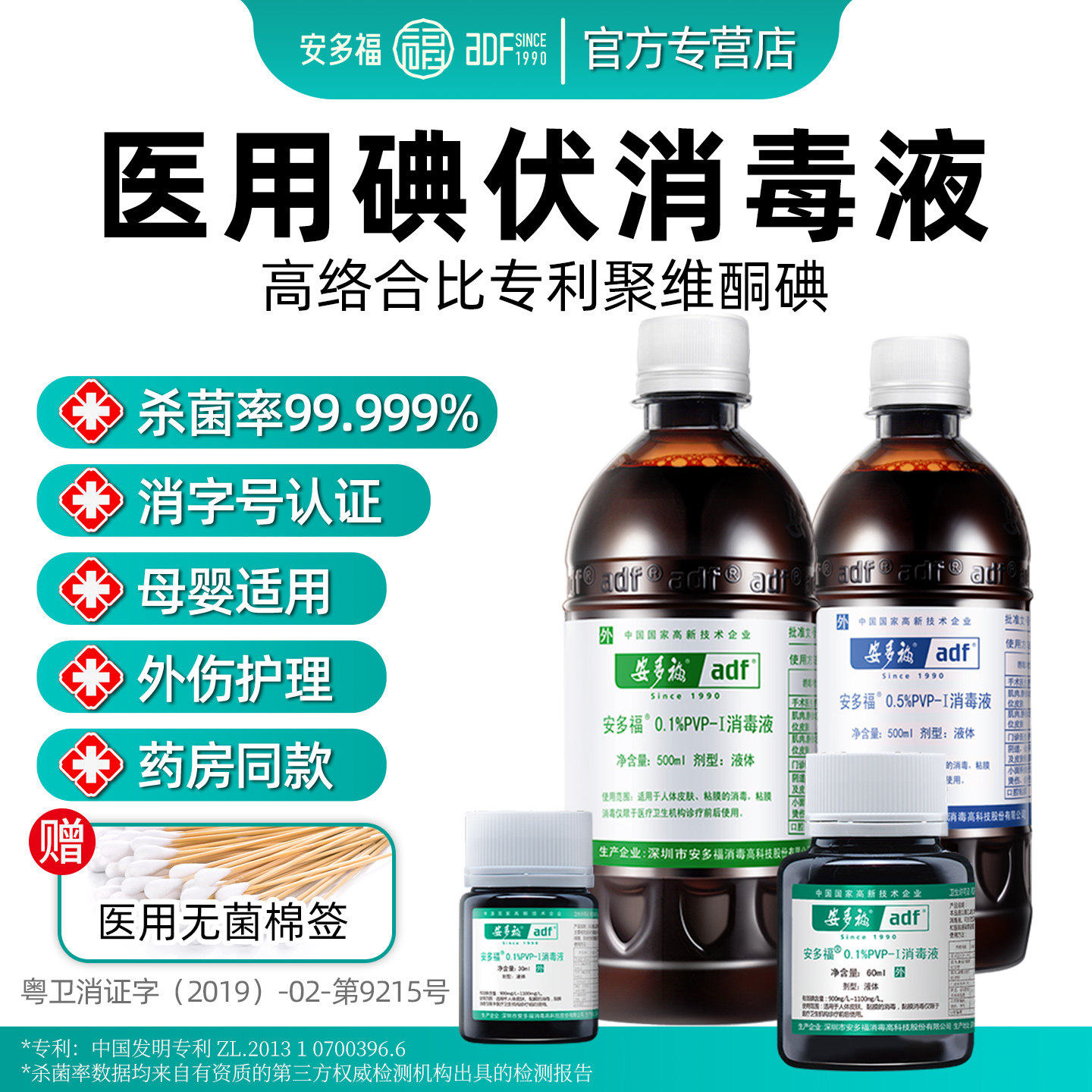 安多福PVP-I碘伏消毒液医用大瓶500ml新生婴儿肚脐带皮肤杀菌碘酒