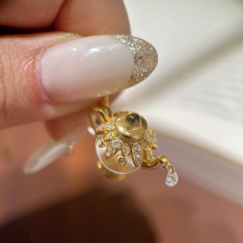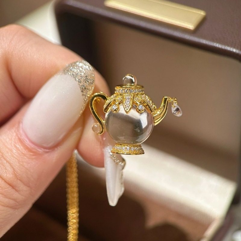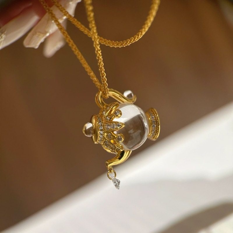 925Vintage中古高级感气质水晶茶壶项链镶嵌锆石水滴小众锁骨链
