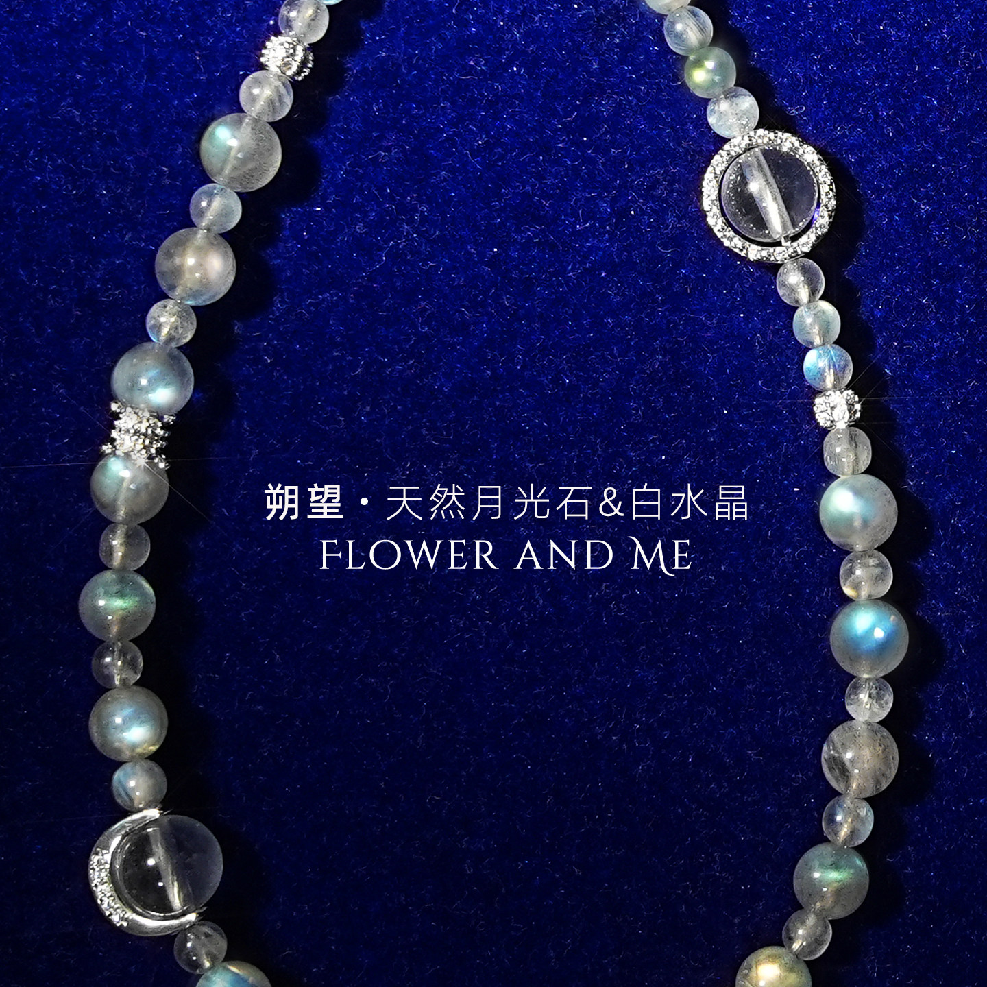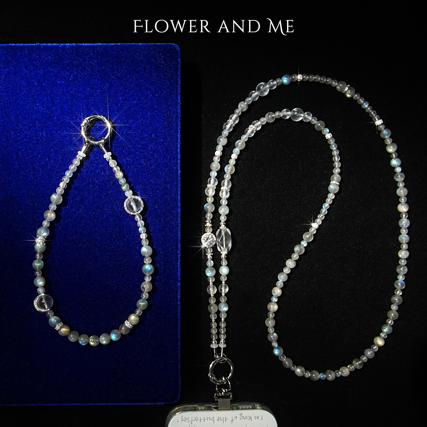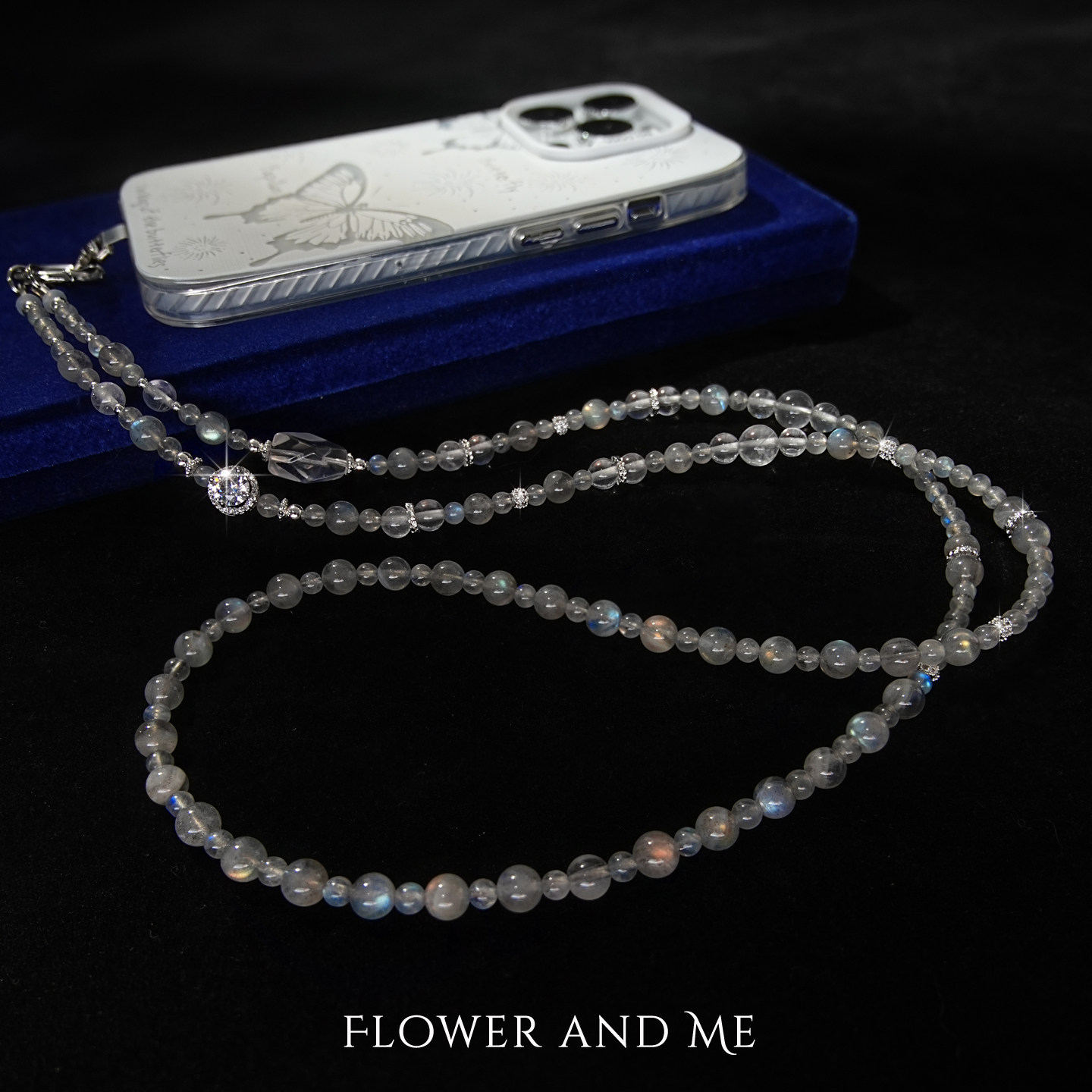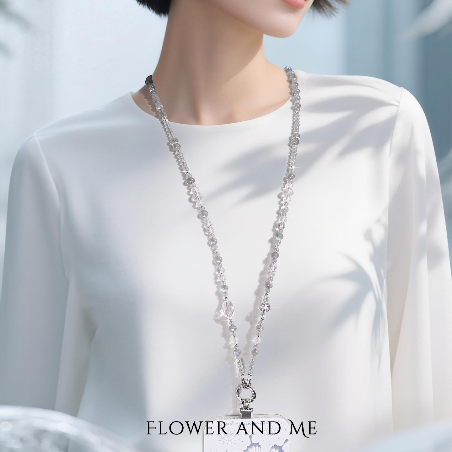 F&M天然月光石白水晶锆石钢绳挂链长短款轻奢挂脖钥匙工牌手机链