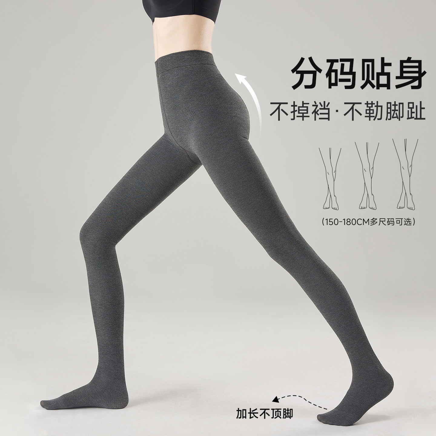 菇娘家热压连裤袜高支棉羊毛打底裤女灰色大码秋冬黑色保暖瘦腿袜