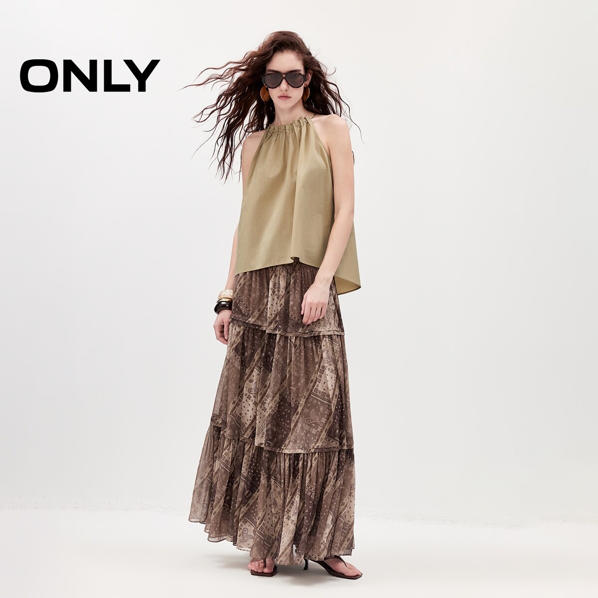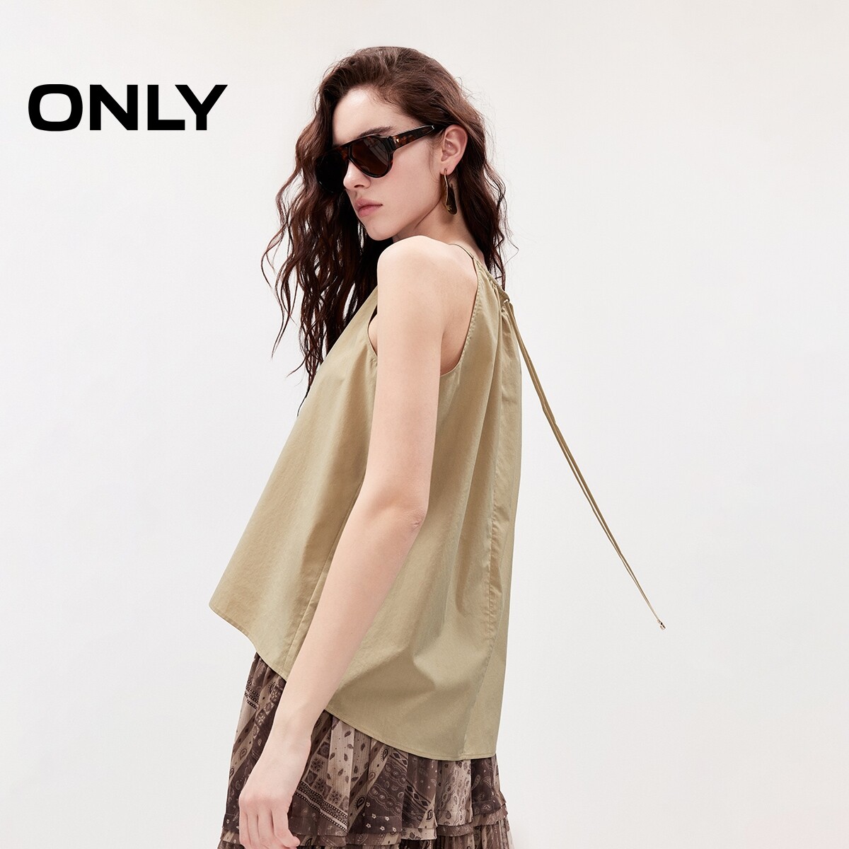 ONLY2026春季新款可调节V型系带圆领纯色宽松下摆吊带雪纺衫女