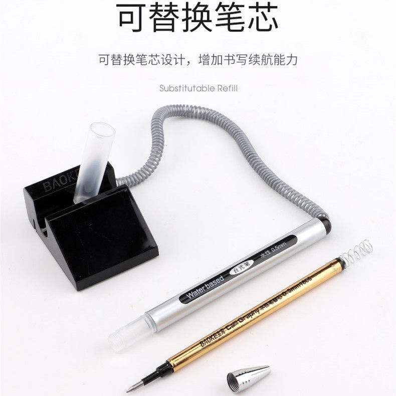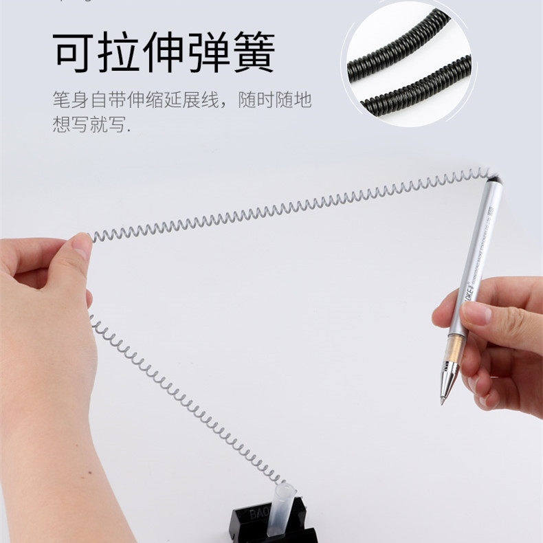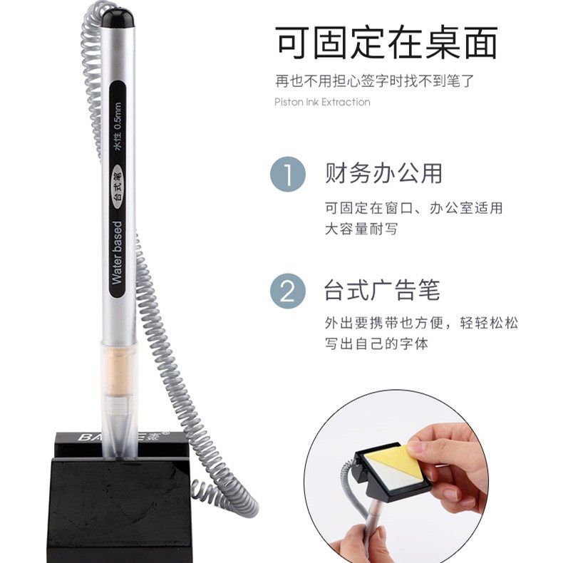 宝克650中性台笔拉线笔电话笔银行柜台带线办公桌面商务固定签字笔粘桌笔防丢笔黑色0.5mm酒店吧台台式笔文具