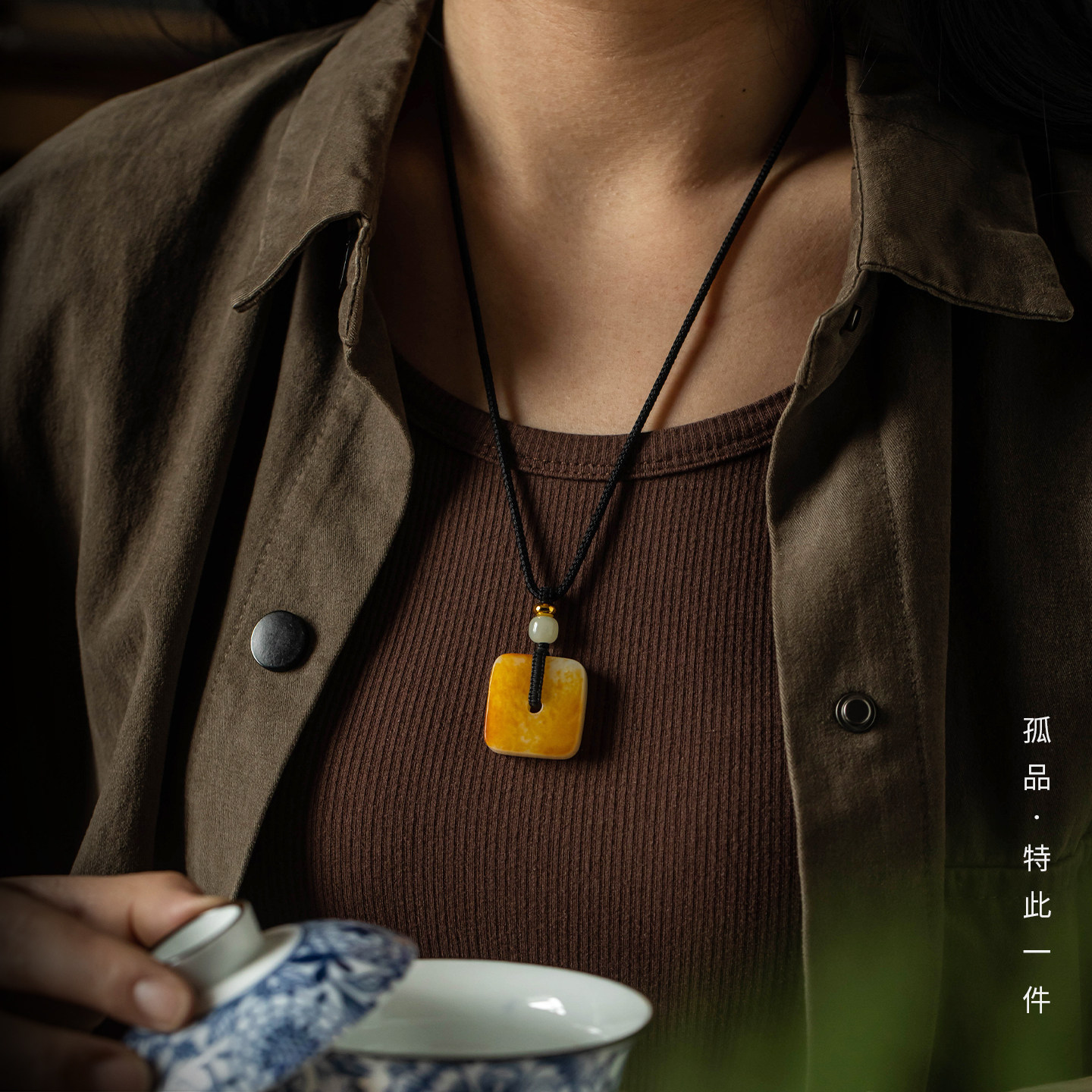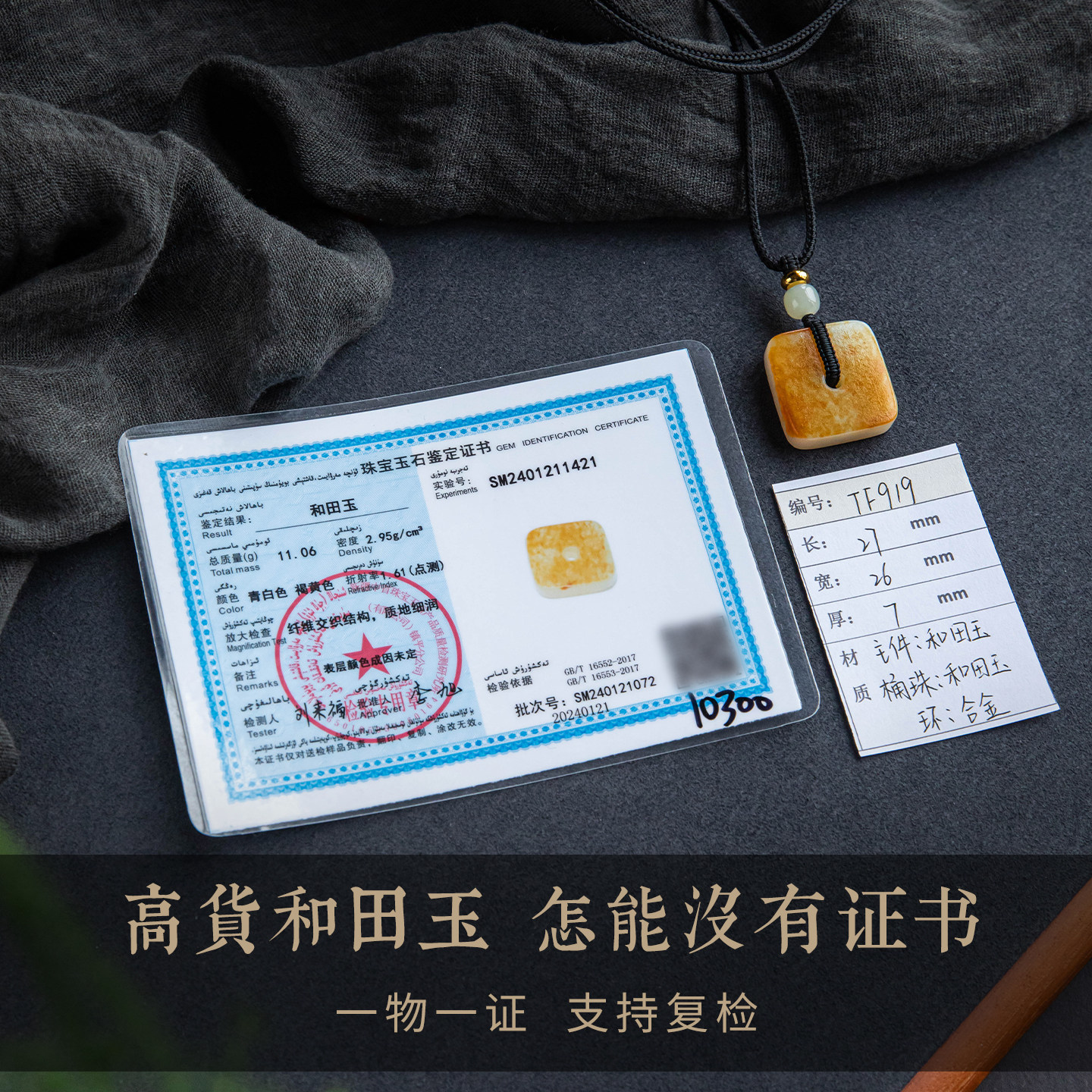 孤品【和田玉·平安扣】保真和田玉方形项链细腻吊坠天然一物一证