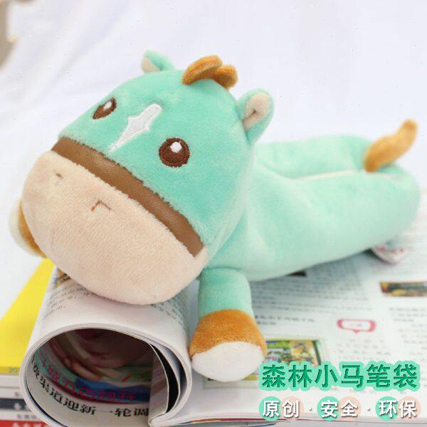 开学季卡通毛绒笔袋小学生创意可爱文具袋小马公仔拉链文具盒