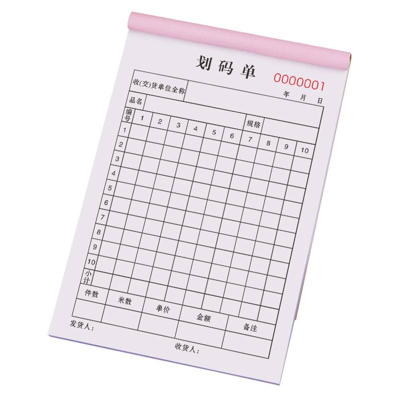 码单本定制二联纺织品出库销售材料清单布匹发货细码单表仓库明细入货服装收货单三联磅码单产品记码单划码单