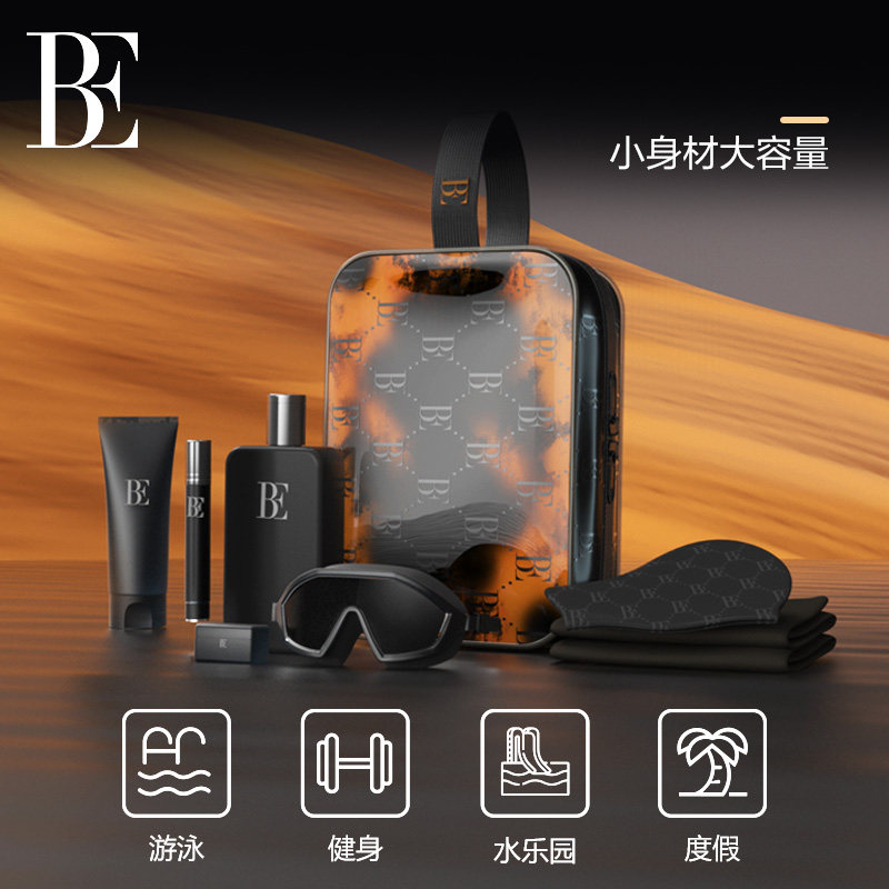 BE范德安2025 洗漱包黑橘斑驳图案多功能多场景便携游泳包