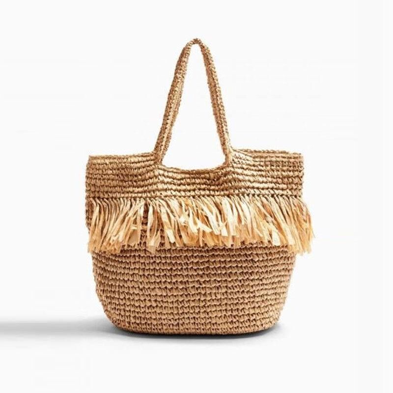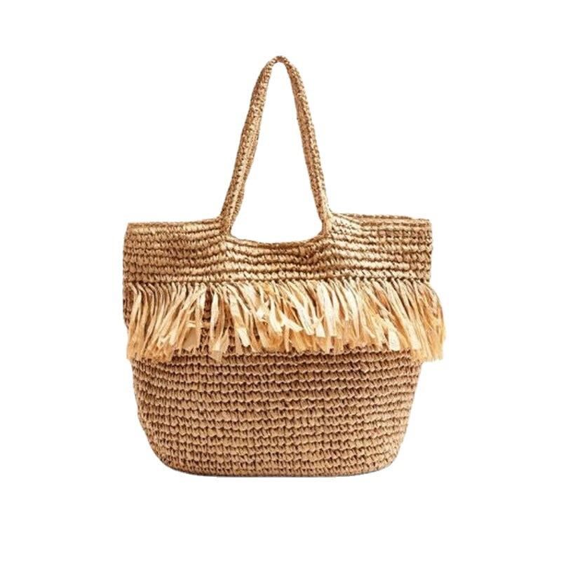 新款编织包流苏时尚草编包海边度假沙滩包单肩手提女包潮