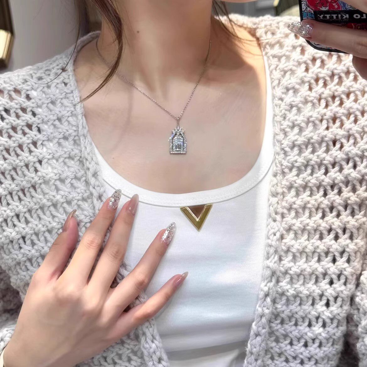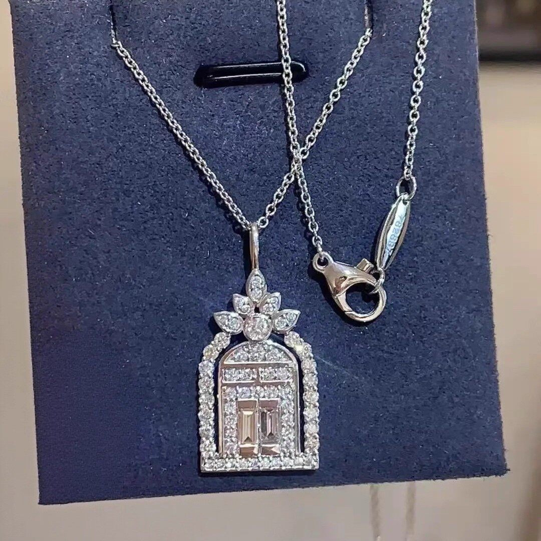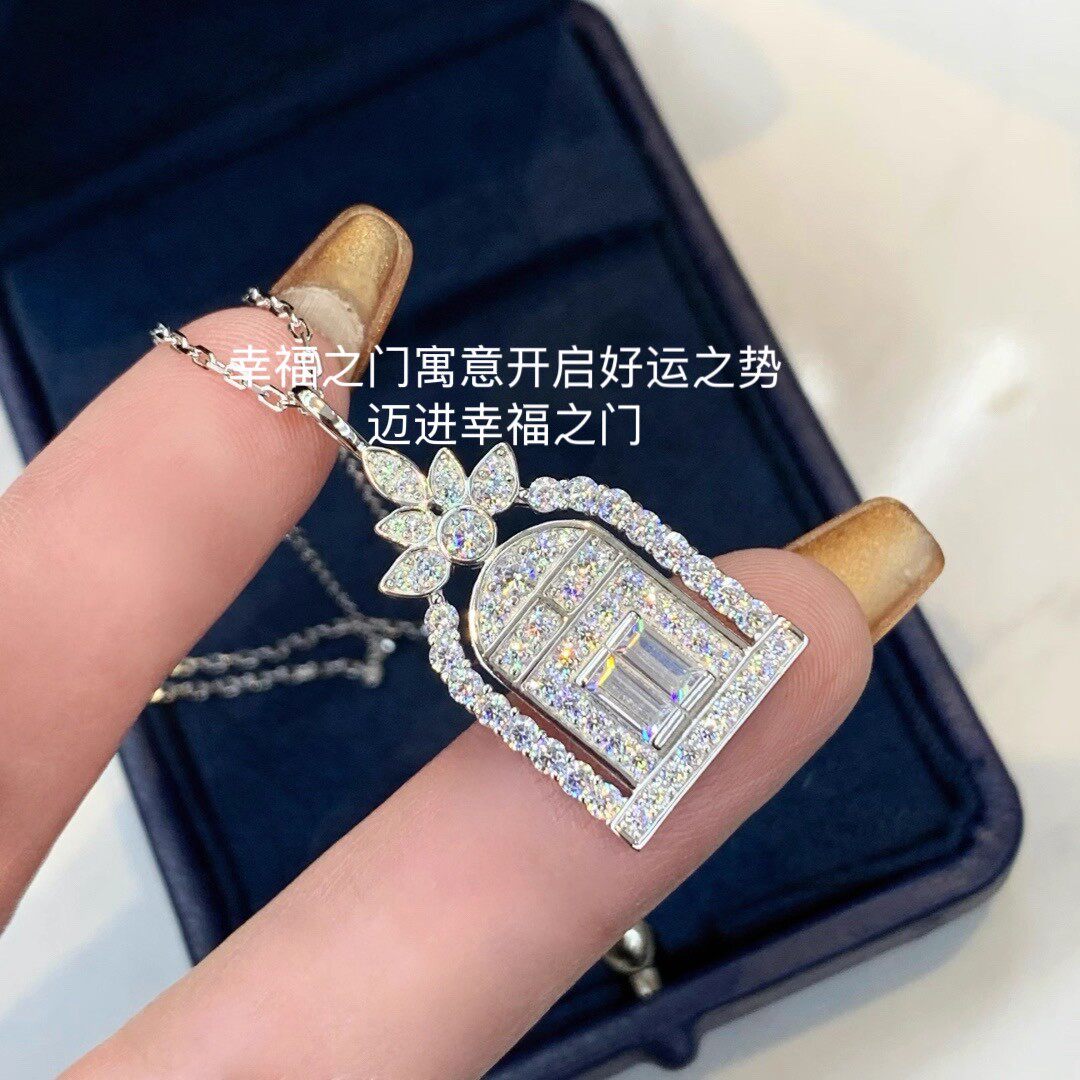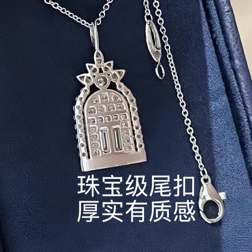 幸福之门项链女高定V金厚镀18K金轻奢盾牌吊坠锁骨链培育白金银色