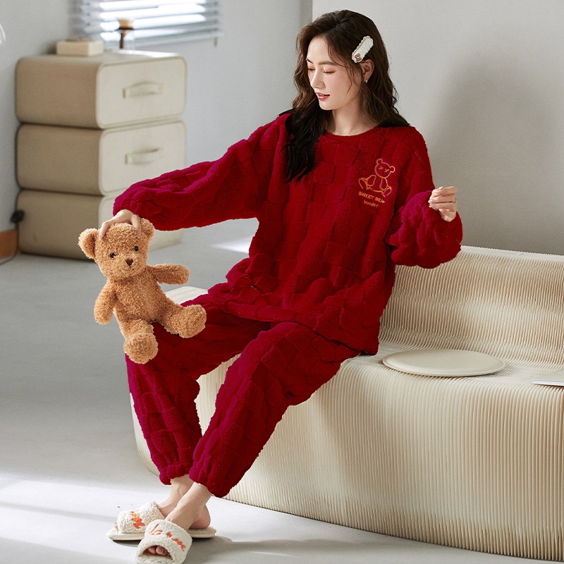 珊瑚绒睡衣女秋冬季加厚加绒法兰绒可爱卡通休闲保暖家居服套装冬