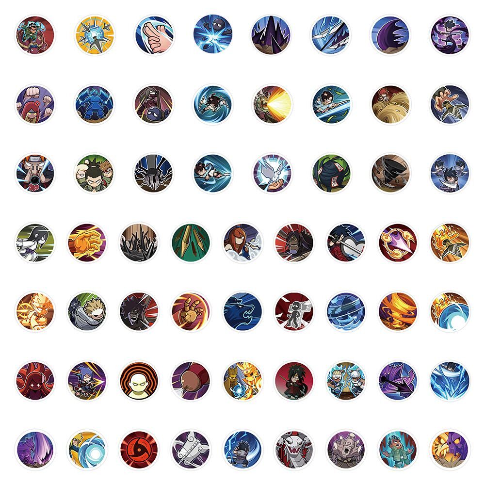 60张火影忍者技能图标贴纸卡通动漫创意装饰手账笔记本防水小贴画