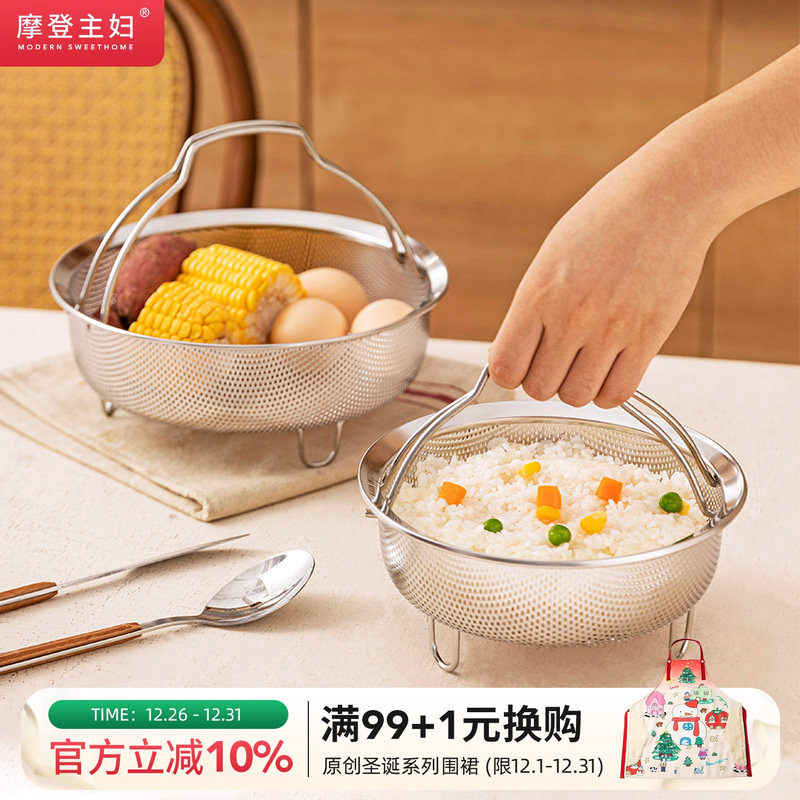 摩登主妇316不锈钢蒸笼蒸盘电饭煲蒸米饭神器食品级蒸屉蒸格蒸架