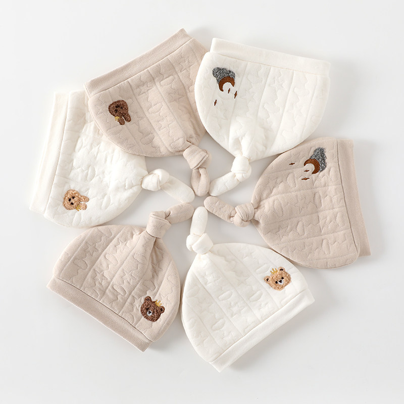 尼多熊胎帽新生婴儿帽子0到3个月纯棉宝宝囟门帽小月龄秋冬双层