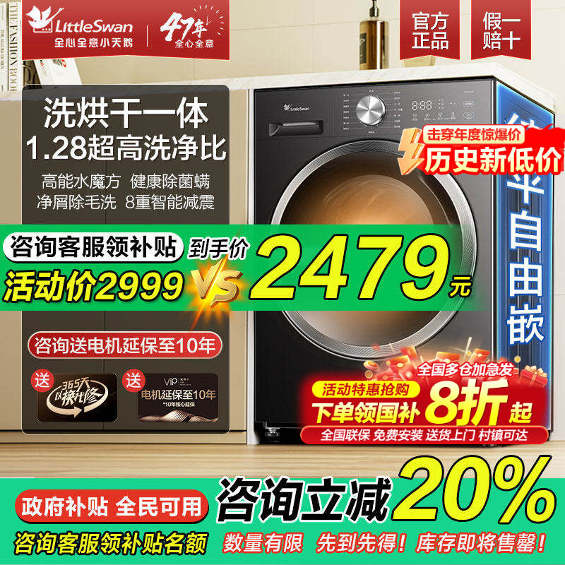 小天鹅水魔方洗烘一体滚筒洗衣机10公斤全自动家用628T官方旗舰店