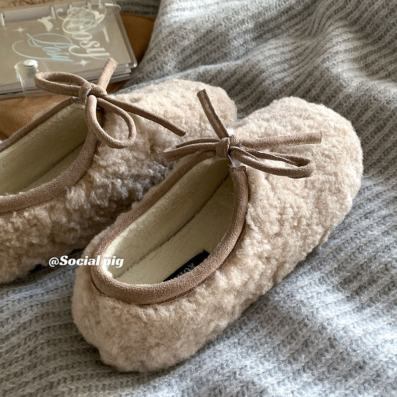 唔~太可爱了哇!羊羔毛毛鞋女外穿秋冬季加绒单鞋棉鞋豆豆鞋平底