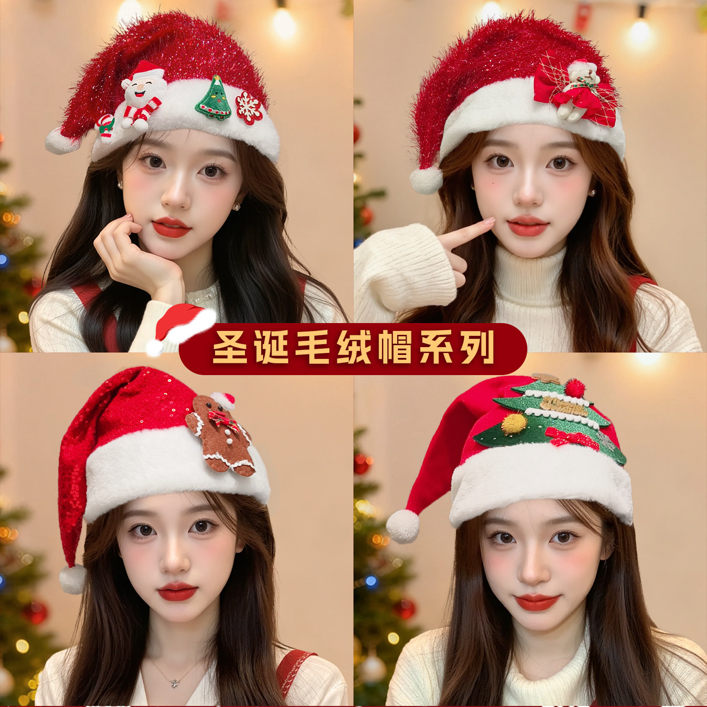 圣诞帽装扮毛绒帽氛围感拍照饰品2025新款圣诞节装饰圣诞树帽子