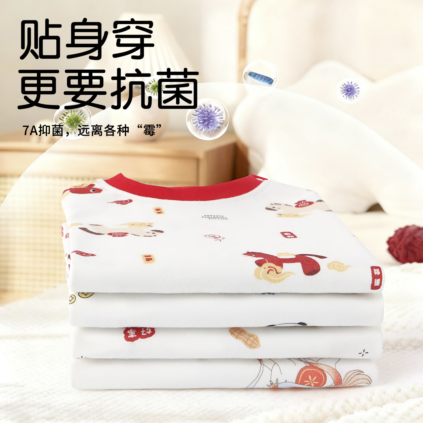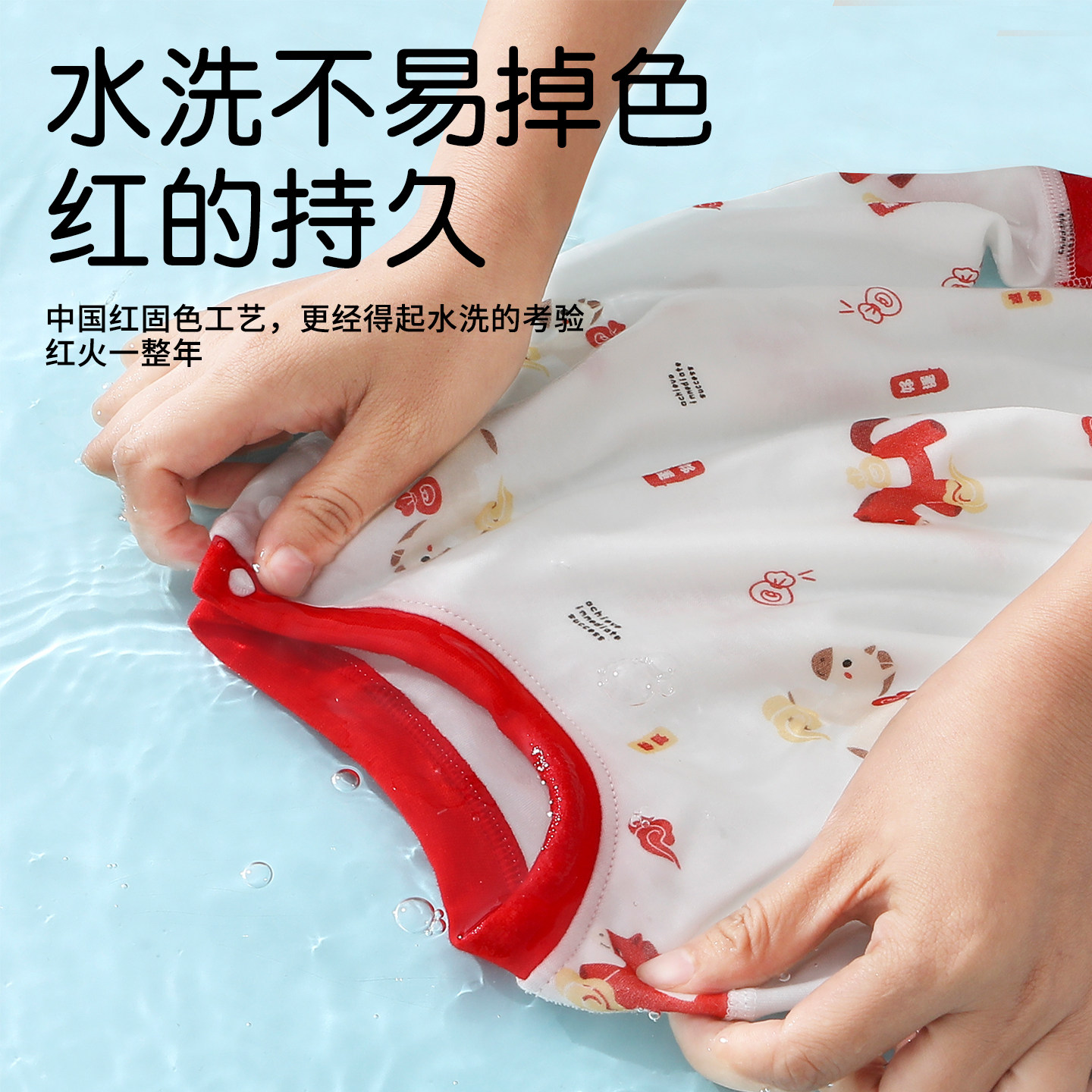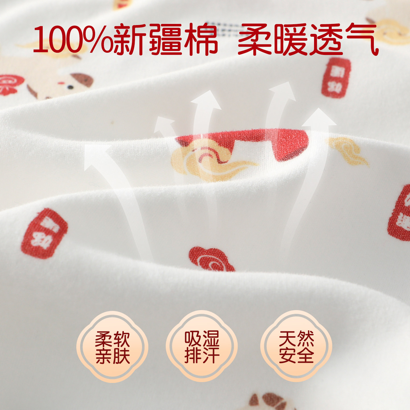 婧麒婴儿秋衣秋裤分体套装宝宝红色过拜年喜庆衣服纯棉儿童内衣